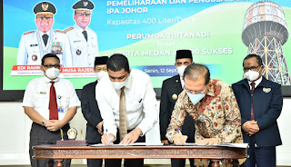 Perjanjian kerja sama ini untuk meningkatkan pelayanan air minum kepada masyarakat dengan membangun Instalasi Pengolahan Air (IPA) di wilayah Kecamatan Medan Johor yang berkapasitas 400 liter/ detik.