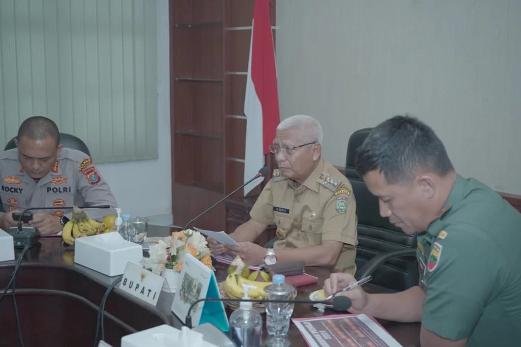 VIRAL24.CO.ID -ASAHAN – Senin,(29/05/23) Bertempat di Aula Mawar Kantor Bupati Asahan, Bupati Asahan H. Surya, BSc memimpin rapat bersama Forkopimda kabupaten Asahan membahas tentang isu-isu aktual, yang berkembang menjelang Pemilu Tahun 2024. Rapat ini juga berupaya menangkal potensi Ancaman Tantangan Hambatan dan Gangguan atau (ATHG) yang dapat mengganggu stabilitas daerah serta mempertahankan ideologi, politik, ekonomi, sosial budaya , pertahanan dan keamanan (Ipoleksosbud) Hankam khusus di Kabupaten Asahan.