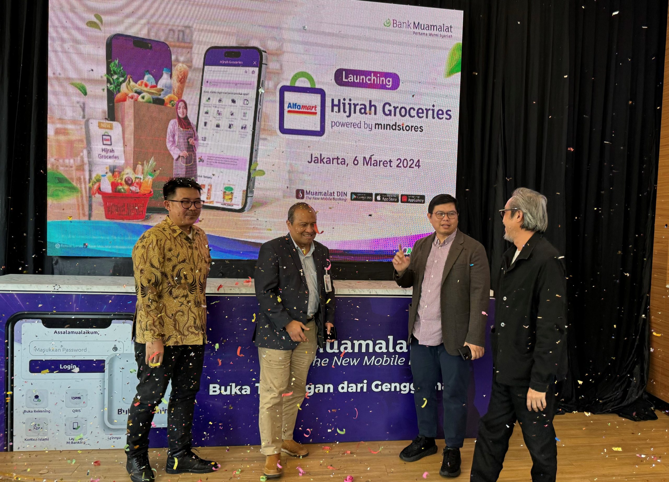 Hijrah Groceries resmi diluncurkan pada 6 Maret 2024 di Muamalat Tower, Jakarta. Acara ini dihadiri oleh Direktur Utama Bank Muamalat Indra Falatehan, Direktur Operasi dan Digital Bank Muamalat Wahyu Avianto, Chief Executive Officer Mindstores Adian Adhitama Bachtiar, Direktur Utama Lembaga Layanan Pemasaran Koperasi dan UKM (SMESCO) Leonard Theosabrata, dan Virtual Store General Manager Alfamart Viendra Primadia.