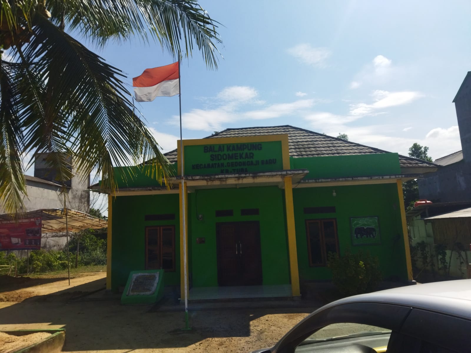 Hasil pantauan di lapangan, sebuah bendera merah putih yang berkibar tepat di depan Balai Pemerintahan Kampung Sidomekar tampak robek, lusuh, dan kusam. Bahkan, saat tertiup angin sobekan bendera nampak terlihat jelas.