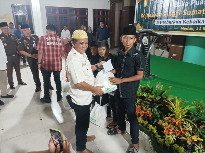 VIRAL24.CO.ID – MEDAN – Forum Wartawan Kejaksaan Tinggi Sumatera Utara (Forwaka Sumut) menggelar kegiatan Safari Ramadan 1447 H/2026 M dengan memberikan santunan kepada anak yatim piatu. Kegiatan tersebut dilaksanakan di sela acara buka puasa bersama dengan Kepala Kejaksaan Tinggi (Kajati) Sumut dan insan pers di Adhyaksa Hall Kejati Sumut, Jalan A.H. Nasution No. 1 C, Medan, Rabu (11/3/2026).