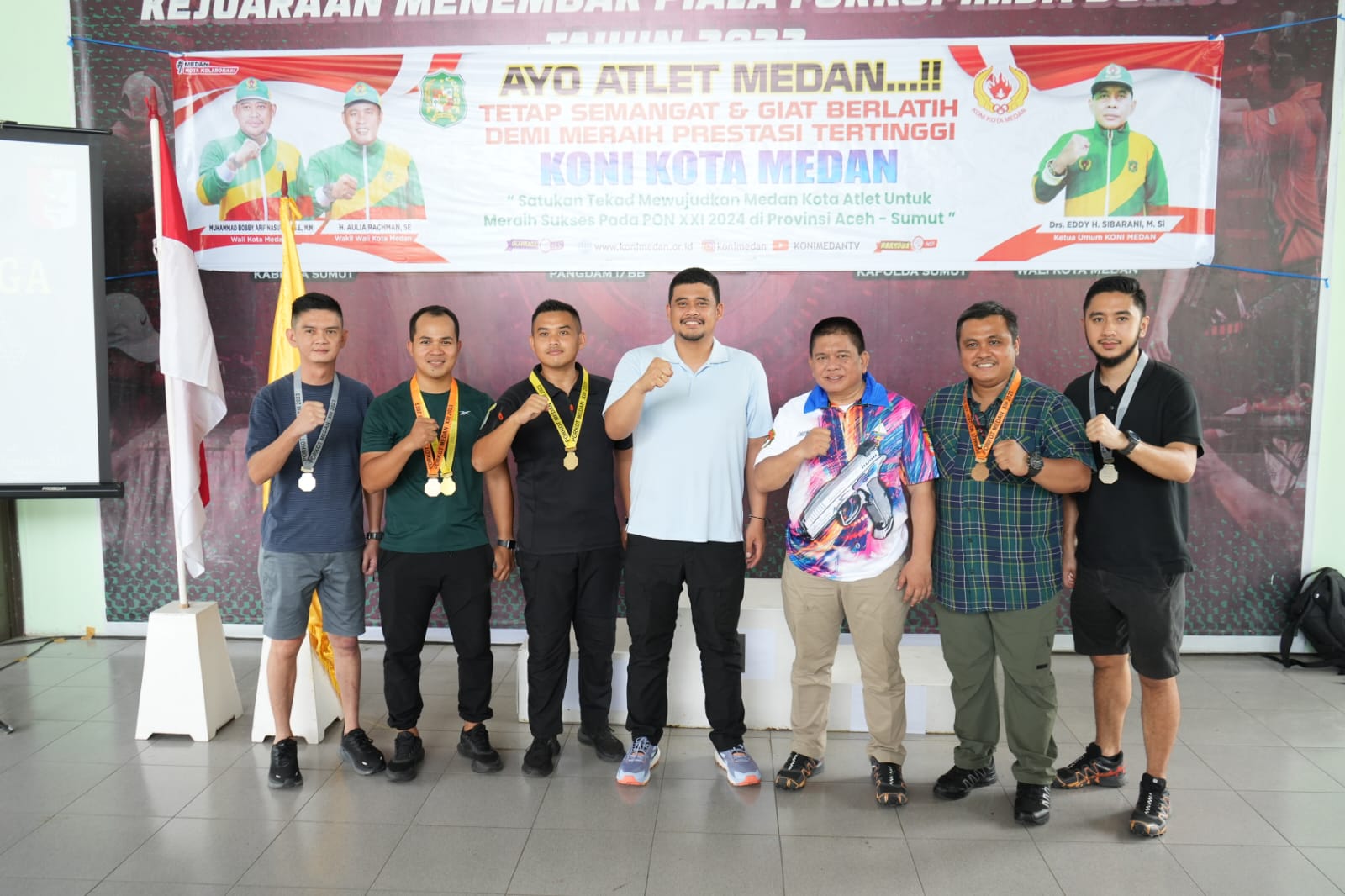 Usai mengikuti lomba menembak tersebut, Wali Kota Medan Bobby Nasution juga menyerahkan medali kepada para juara lomba menembak dari masing-masing kategori.
