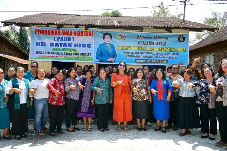 VIRAL24.CO.ID – TAPANULI UTARA – Bunda PAUD Kabupaten Tapanuli Utara, Neny Angelina JTP Hutabarat, menghadiri pertemuan guru Pendidikan Anak Usia Dini (PAUD) se-Kecamatan Sipoholon yang digelar di PAUD Batak Kids, Desa Hutaraja Simanungkalit, Kamis (23/4/2026).