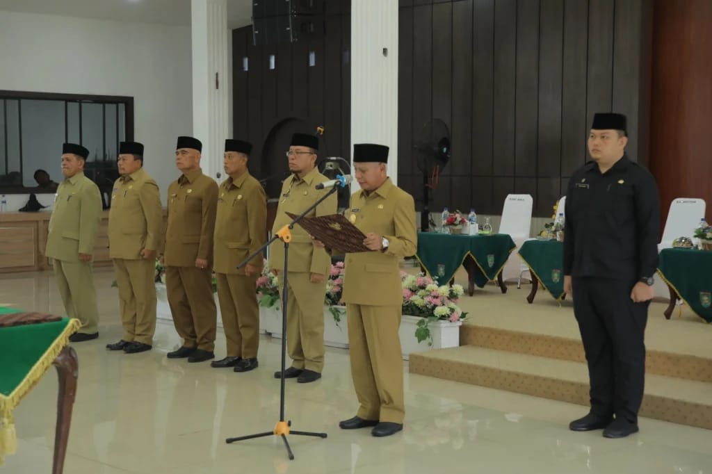 VIRAL24.CO.ID – ASAHAN – Berdasarkan Surat Keputusan Bupati Asahan Nomor 100.3.3.2-108.3-5.2 Tahun 2023 tentang Pengangkatan Pegawai Negeri Sipil Dalam Jabatan Tinggi Pratama di Lingkungan Pemerintah Kabupaten Asahan, Bupati Asahan H. Surya, BSc didampingi Sekretaris Daerah Kabupaten Asahan dan Para Asisten melantik dr. Hari Sapna, MKM Sekretaris Dinas Kesehatan Kabupaten Asahan menjadi Kepala Dinas Kesehatan Kabupaten Asahan di Pendopo Rumah Dinas Bupati Asahan, Jum’at (06/10/2023).