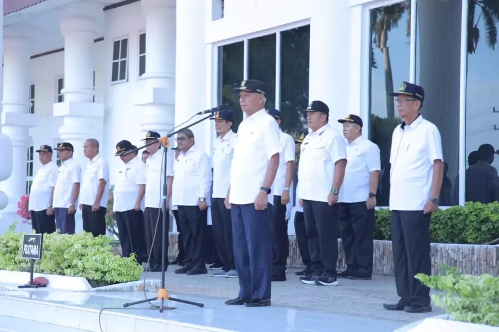 VIRAL24.CO.ID – ASAHAN – Usai melaksanakan cuti bersama, memperingati Hari Raya Idul Fitri 1 Syawal 1444 H/2023 M, Pemerintah Kabupaten Asahan melaksanakan Apel Gabungan Perdana yang dipimpin langsung Bupati Asahan H. Surya, BSc di Halaman Kantor Bupati Asahan, Rabu (26/04/2023). Dalam apel tersebut tampak hadir juga Wakil Bupati Asahan, Sekretaris Daerah Kabupaten Asahan, Para Asisten, Staf Ahli Bupati Asahan, OPD dan ASN di Lingkungan Pemerintah Kabupaten Asahan.