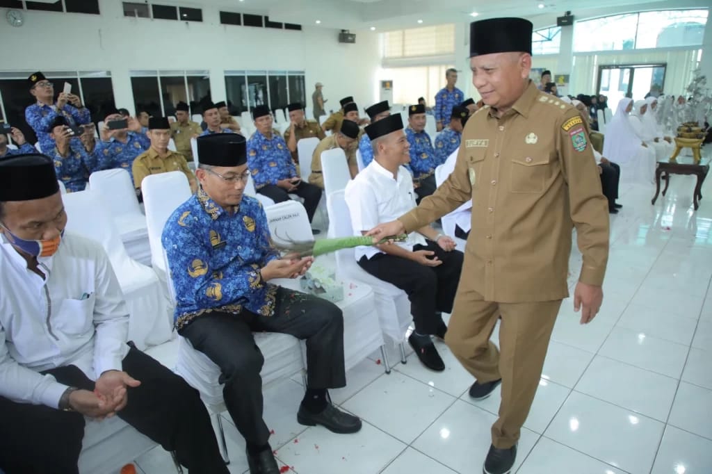 VIRAL24.CO.ID – ASAHAN – Sebanyak 28 Jamaah Calon Haji Anggota Korpri Kabupaten Asahan terdiri dari 16 orang Laki-Laki dan 12 orang Perempuan di upah-upah oleh Bupati Asahan di Aula Melati Kantor Bupati Asahan, Selasa (23/05/2023). Turut hadir Ketua DPK Korpri Asahan, Para Asisten, Staf Ahli Bupati, OPD, Camat dan tamu undangan lainnya.