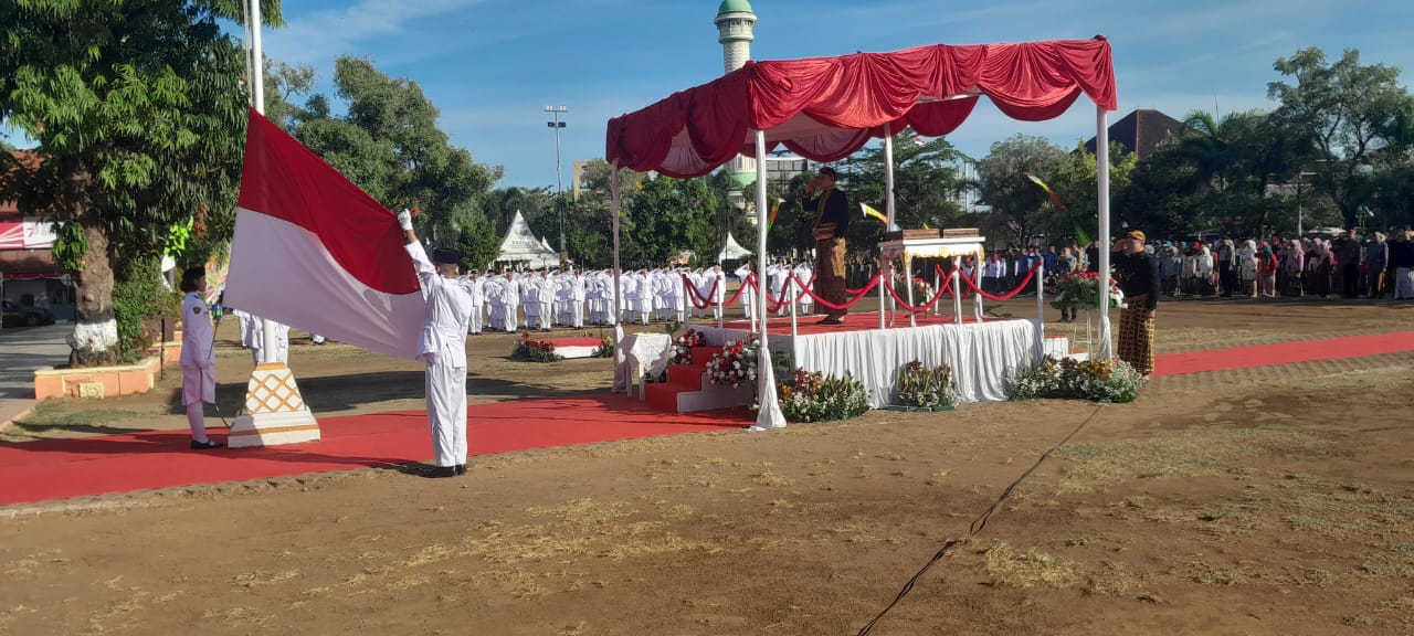 Sementara dalam pengibaran bendera merah putih dilaksanakan oleh 70 anggota paskibra yang telah mengikuti pemusatan latihan berlangsung dengan aman dan lancar.