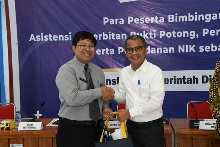 VIRAL24.CO.ID – NIAS – Bupati Nias Yaatulo Gulo, SH, SE, M. Si, membuka secara resmi Sosialisasi Terkait Validasi NIK-NPWP, Pembuatan Bukti Pemotongan PPh Pasal 21, Pelaporan SPT Tahunan PPh Dan Pelaksanaan Pemungutan Pajak Dan Retribusi Daerah, bertempat di Gedung Serba Guna, Lt III Kantor Bupati Nias, Kamis (16/02/2023).
