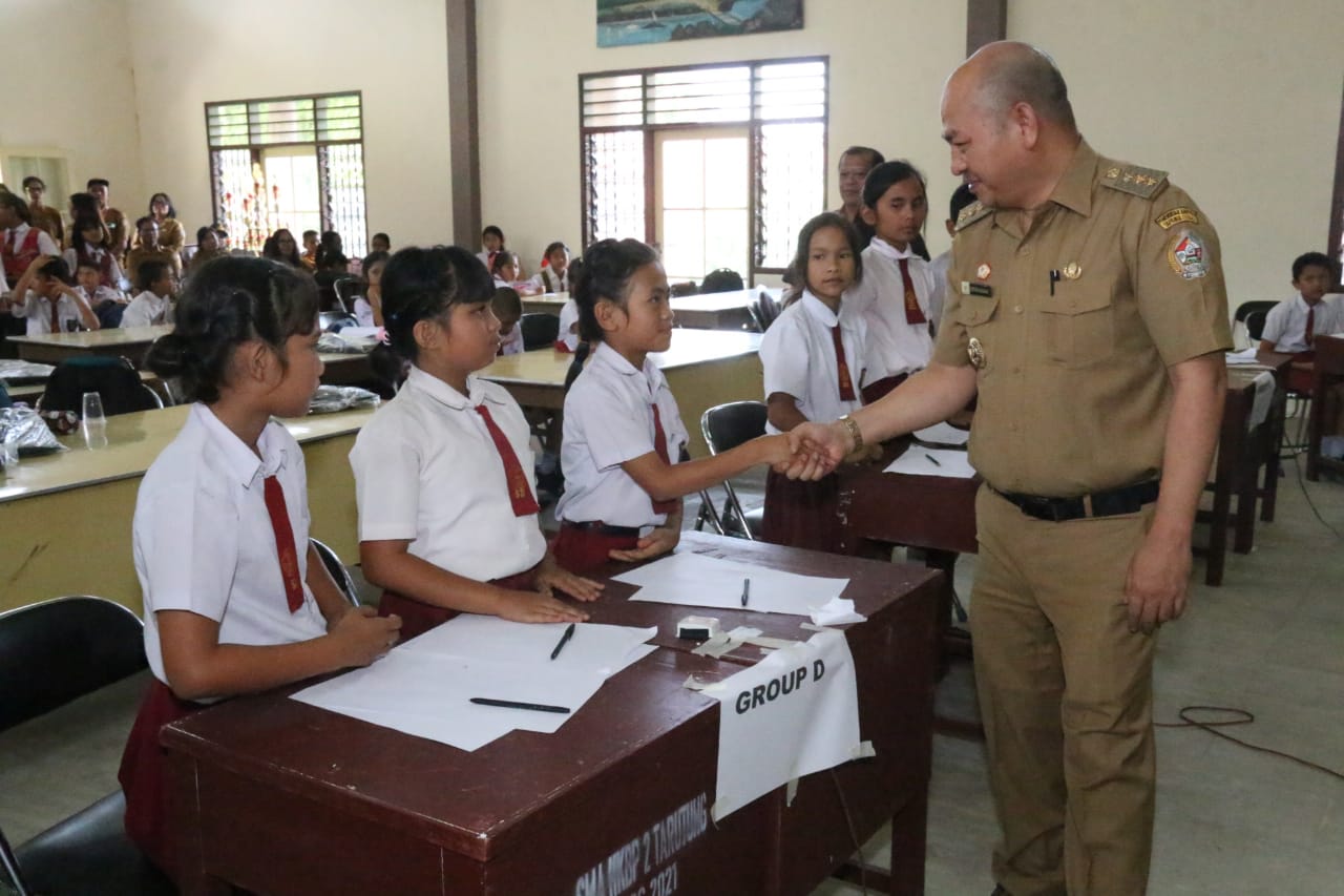Kepada seluruh anak didik kami peserta Cerdas Cermat ini kami ucapkan selamat mengikuti dan selamat bertanding, kesempatan mengikuti kegiatan ini harus kamu hargai dengan cara menyuguhkan kemampuan yang terbaik, dan seterusnya harus selalu menjaga nama baik sekolah dan juga menghargai guru yang telah membimbing sehingga pada saat ini dapat terpilih sebagai utusan kecamatan masing-masing. Jadikanlah kegiatan ini untuk dapat meningkatkan prestasi dan batu loncatan dalam menggapai sukses dikemudian hari.” tambah Bupati.
