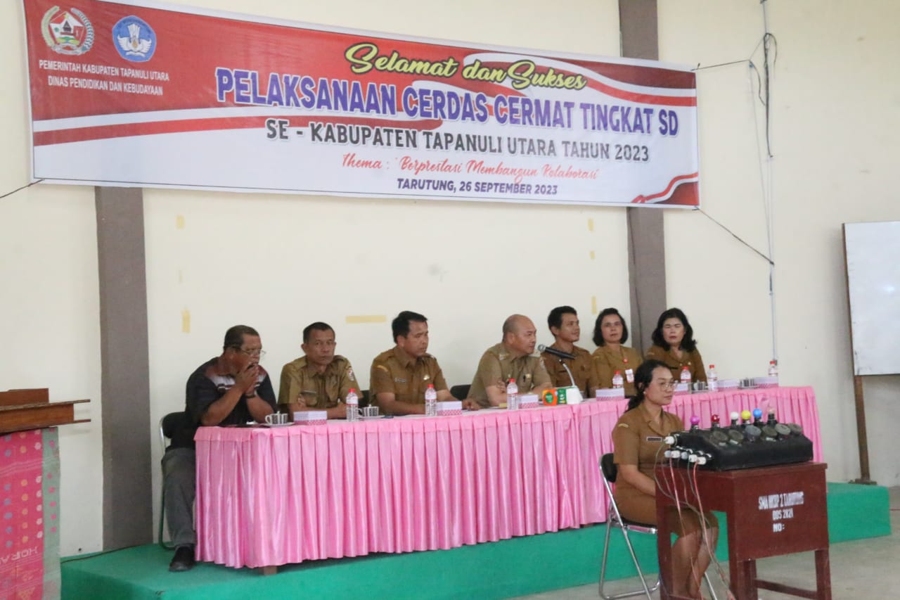 “Saya menyampaikan selamat dan memberikan apresiasi pada siswa-siswi yang hadir ditempat ini yang terpilih sebagai peserta pelaksana Cerdas Cermat Tingkat SD se-Kabupaten Tapanuli Utara, dimana anak-anak kami peserta cerdas cermat ini adalah murid terbaik dikecamatan masing-masing. Kegiatan ini merupakan kesempatan bagi siswa/siswi mengembangkan kepribadian yang maju dan unggul serta menjadi yang terbaik dibidangnya.