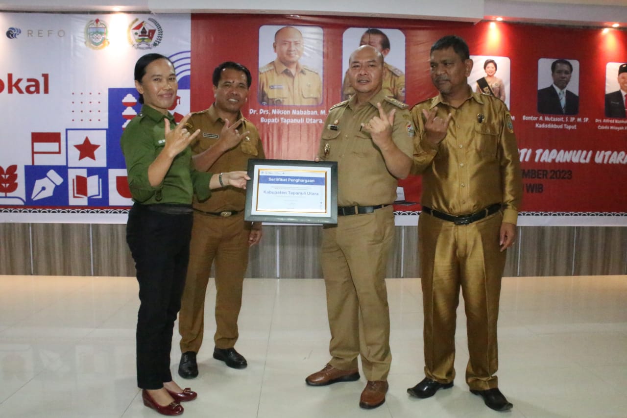 Pada pelaksanaan festival ini juga dilakukan penyerahan sertifikat dari REFO kepada Pemerintah Kabupaten Tapanuli Utara sebagai pelaksana Festival Lokal belajar.id yang diterima langsung oleh Bupati Tapanuli Utara Dr. Drs. Nikson Nababan, M.Si (HS)
