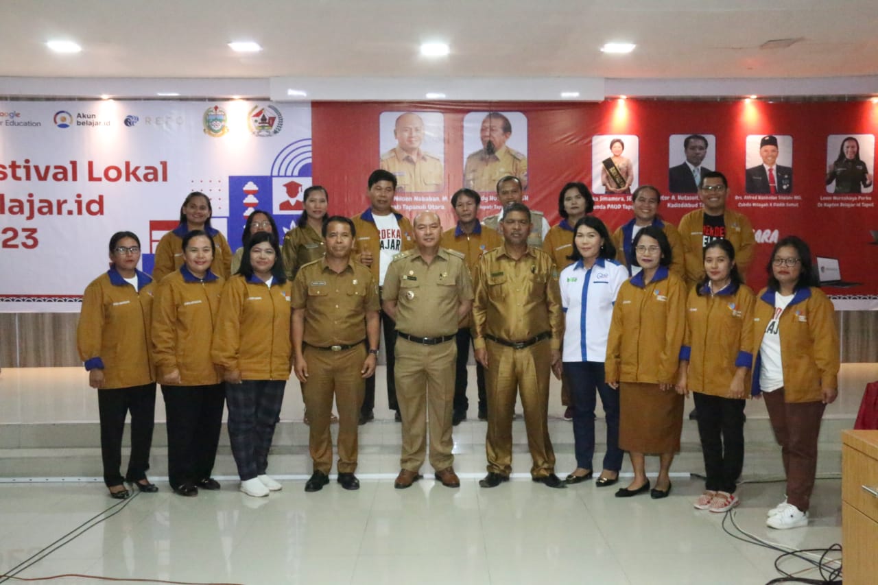 Selanjutnya beliau menyampaikan bahwa Festival Lokal belajar.id merupakan serangkaian proses dalam ajang Daerah Jawara.id 2023. Penilaiannya dari 8 indikator tingginya akun belajar,id maka 25 Kabupaten/Kota terpilih melaksanakan festival lokal belajar.id, salah satunya Kabupaten Tapanuli Utara, maka maksud dari tujuan dari kegiatan tersebut adalah mengajak semua sekolah PAUD, SD, SMP, SMA, SMK untuk mengaktivasi semua akun belajar.id hinggal 100%, mengajak semua sekolah PAUD, SD, SMP, SMA, SMK penerima chromebook memanfaatkan akun belajar.id untuk program digitalisasi pembelajaran, mengajak semua sekolah penggerak, guru penggerak, Google Master Trainer pada jenjang PAUD, SD, SMP, SMK, melakukan praktik baik memanfaatkan akun belajar.id dalam pembelajaran dan mengajak semua Kepala Sekolah, Guru dan Tenaga Kependidikan PAUD, SD, SMP, SMA, SMK memanfaatkan Platform Merdeka Belajar, Rapot Pendidikan dalam melaksanakan Program Merdeka Belajar, Rapor Pendidikan dalam melaksanakan Program Merdeka Belajar dan Digitalisasi Pembelajaran.