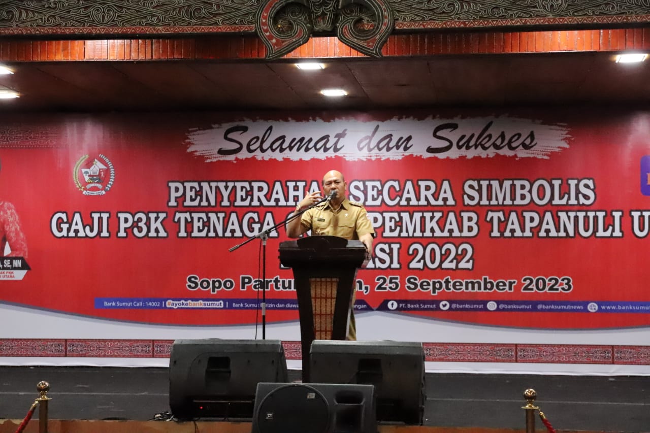 Selanjutnya Pimpinan PT. Bank Sumut cabang Tarutung Bambang R. Andhita dalam sambutannya menyampaikan bahwa Pemkab Taput memiliki salah satu visi yaitu Lumbung Sumber Daya Manusia yang berkualitas, untuk mendukung visi tersebut khususnya dalam bidang Pendidikan yang berkualitas maka Pemerintah Kabupaten Tapanuli Utara teleh merekrut Tenaga Guru PPPK Formasi 2022 dengan tujuan mengoptimalkan pemerataan Pendidikan di seluruh Kabupaten Tapanuli Utara.