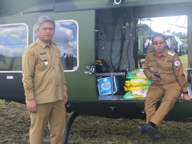 Bupati JTP Hutabarat kemudian turun langsung menyalurkan bantuan makanan ke sejumlah desa terisolir menggunakan helikopter. Bantuan dikirim ke Desa Pagaran Lambung di Kecamatan Adiankoting, Desa Manalu Purba di wilayah Sihaporas, serta Desa Pertengahan di Kecamatan Parmonangan—lokasi yang hingga kini masih sulit dijangkau melalui jalur darat.