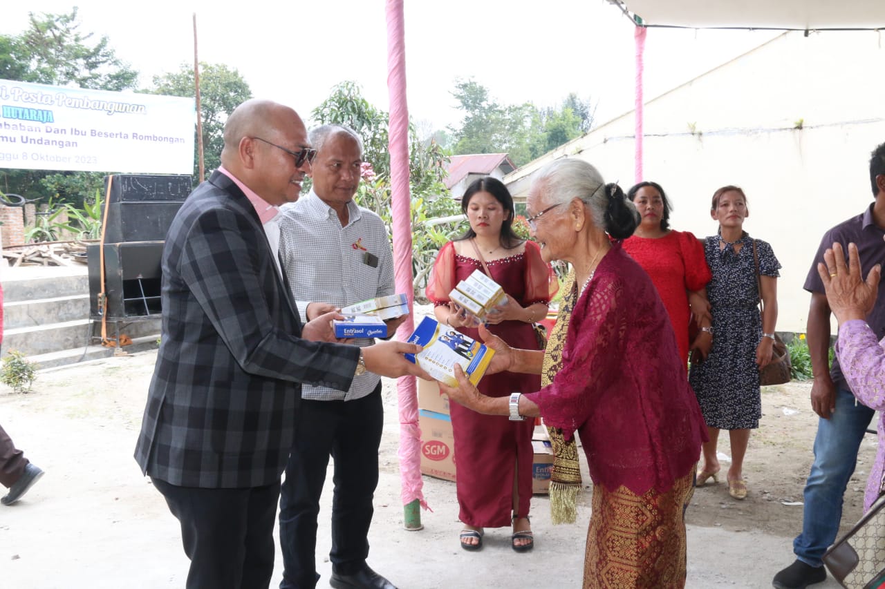 Menutup acara kunjungan Bupati Nikson Nababan memberikan bantuan berupa susu kepada kaum Lansia dan buku tulis serta biskuit kepada anak Sekolah. (HS)