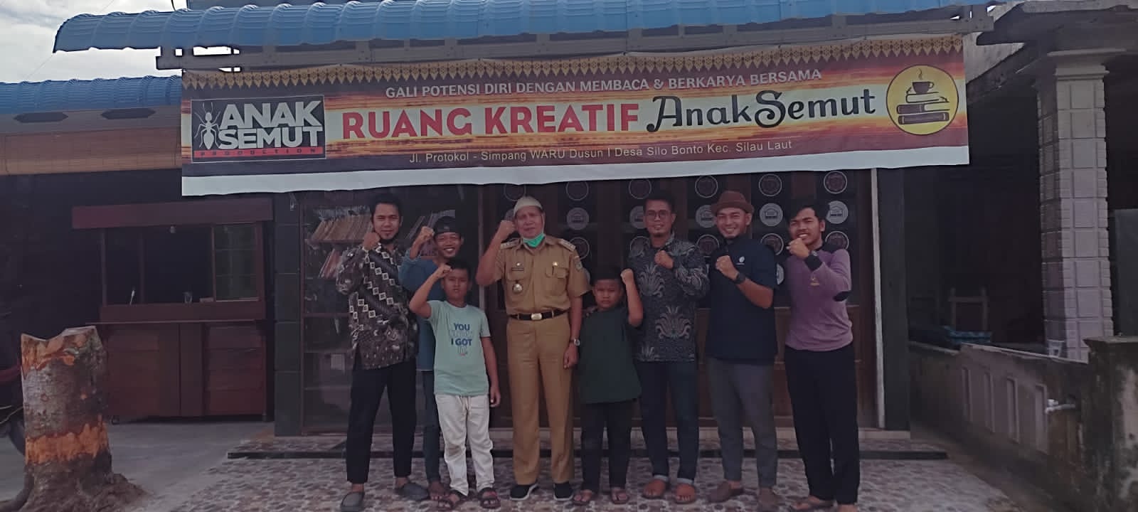 Selanjutnya Camat Silau Laut bersama dengan Tim dan Pemain Pemeran Film REHAL pun Berfoto Bersama di depan Sekretariat AnakSemut Production.