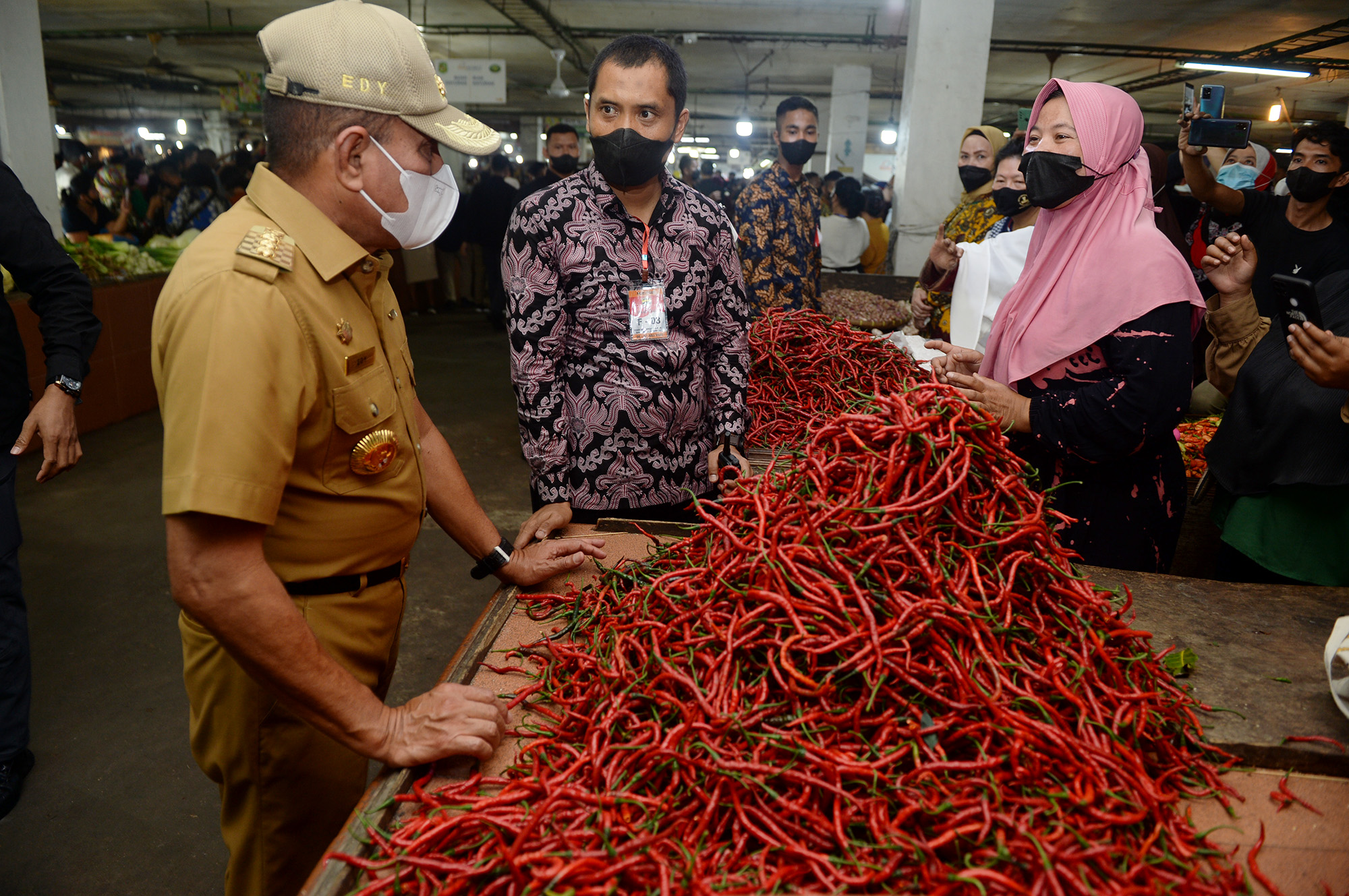 Dalam kunjungan tersebut, Gubernur Edy Rahmayadi juga menyapa dan berbincang dengan para pedagang, salah satunya pedagang cabai. Gubernur menanyakan tentang pasokan dan harga cabai yang dijual.