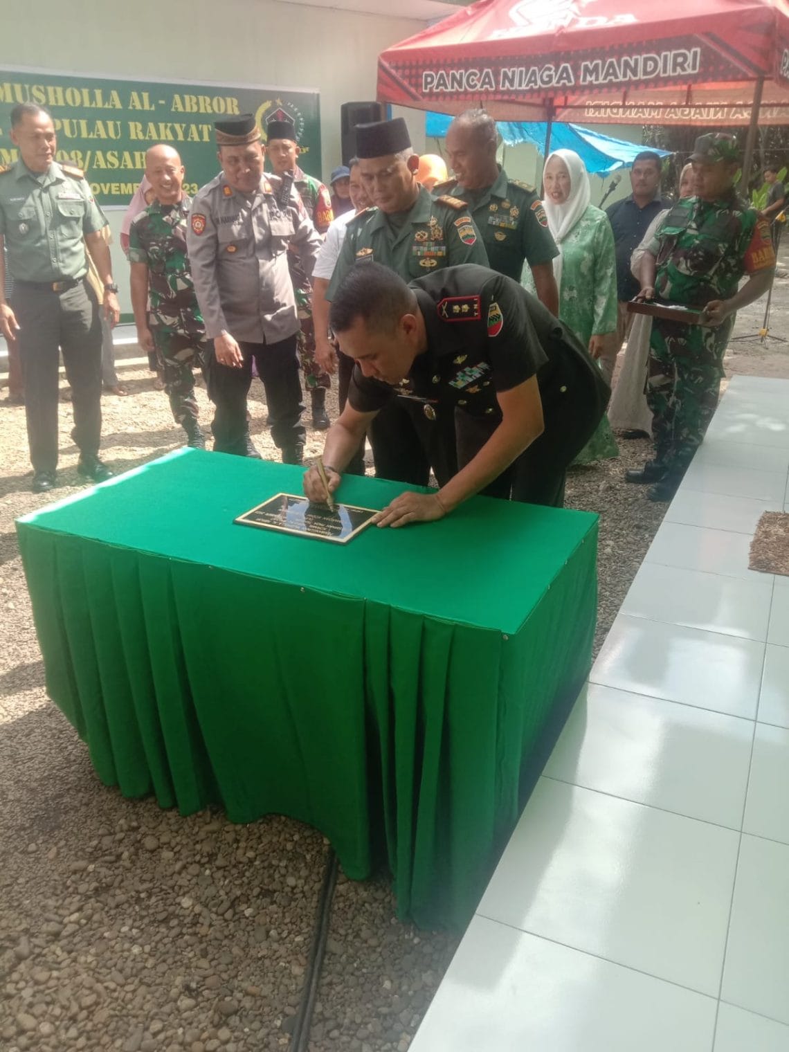 VIRAL24.CO.ID – ASAHAN – Dandim 0208 Asahan Letkol INF M Basarewan, Rabu (15/11/2023 ) meresmikan Musholla Al Abror Koramil 16, Kecamatan Pulau Rakyat, Kabupaten Asahan yang baru saja selesai di bangun.