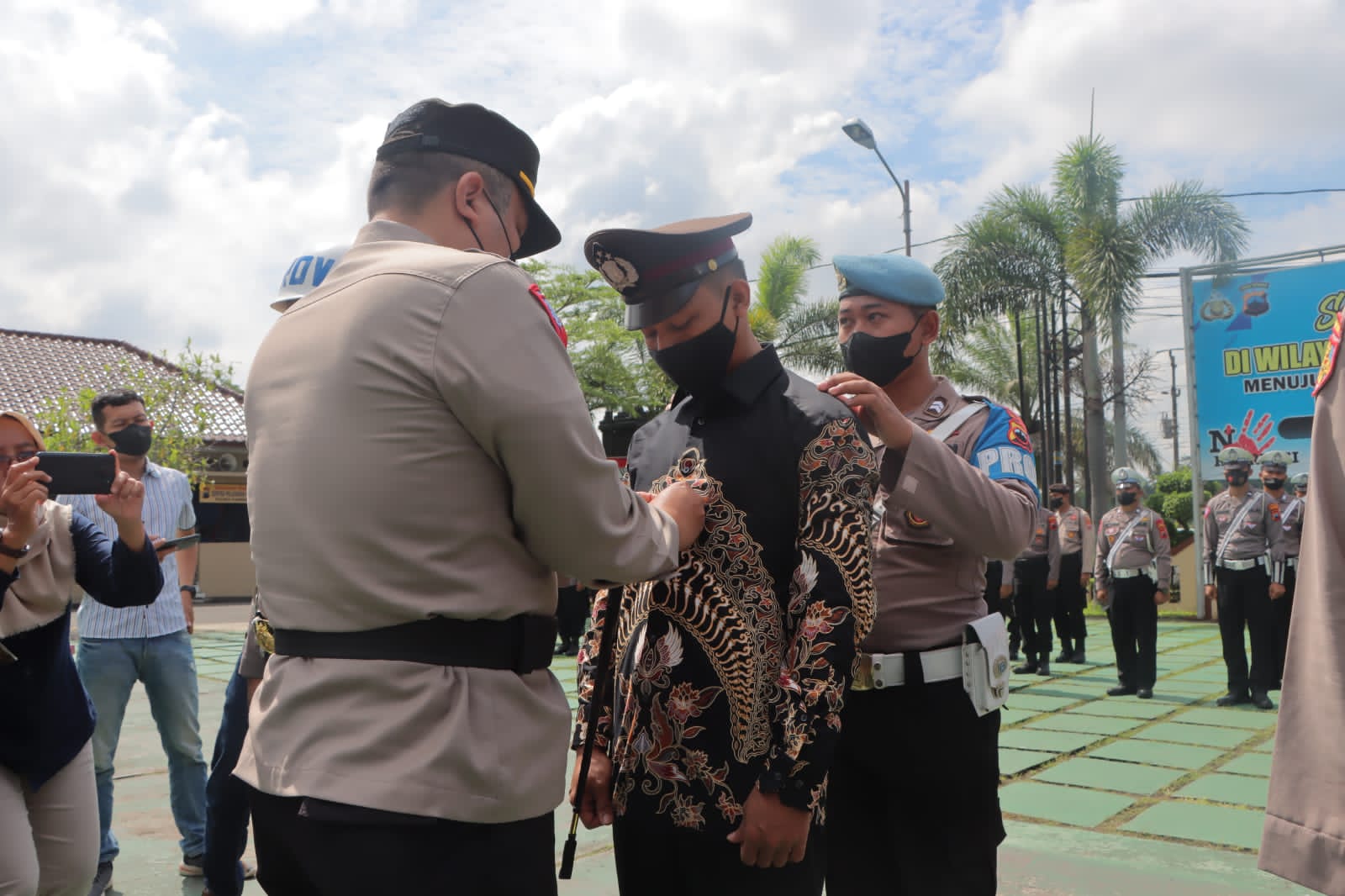 Secara simbolis Kapolres Purworejo melepas baju dinas Polri yang dikenakan AL dan menggantikan dengan baju biasa.
