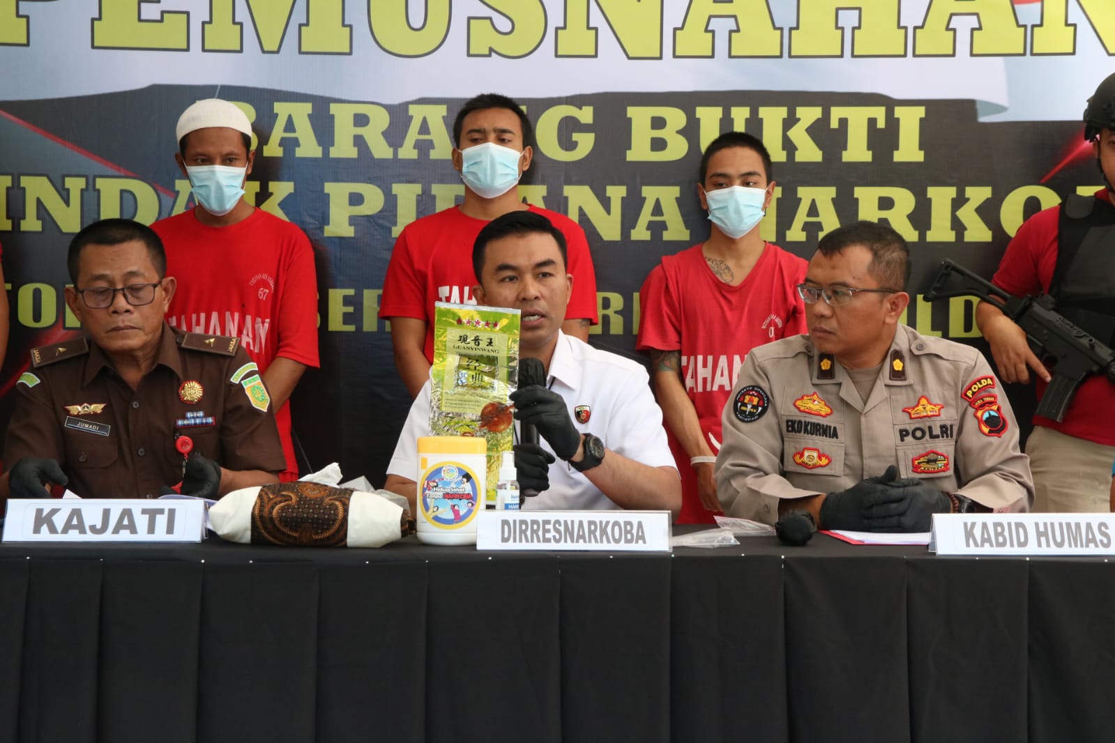 Dirresnarkoba Polda Jateng, Kombes Pol Muhammad Anwar Nasir, S.ik dalam keterangannya mengungkapkan bahwa pemusnahan tersebut merupakan barang bukti yang di sita berdasarkan 3 Laporan Polisi (LP), Untuk kasus dengan Barang Bukti Sabu ada 2 Laporan Polisi yang pertama seberat 1.012,2 Gram diungkap pada 27 Juli 2023 dengan TKP di Kabupaten Demak dan yang kedua seberat 3.988,3 Gram diungkap di Tanjung Emas Semarang pada 31 Juli 2023. Untuk Kasus Ganja merupakan 1 Laporan Polisi dengan barang bukti seberat 7 Kg diungkap di wilayah Sukoharjo pada 14 Agustus 2023.