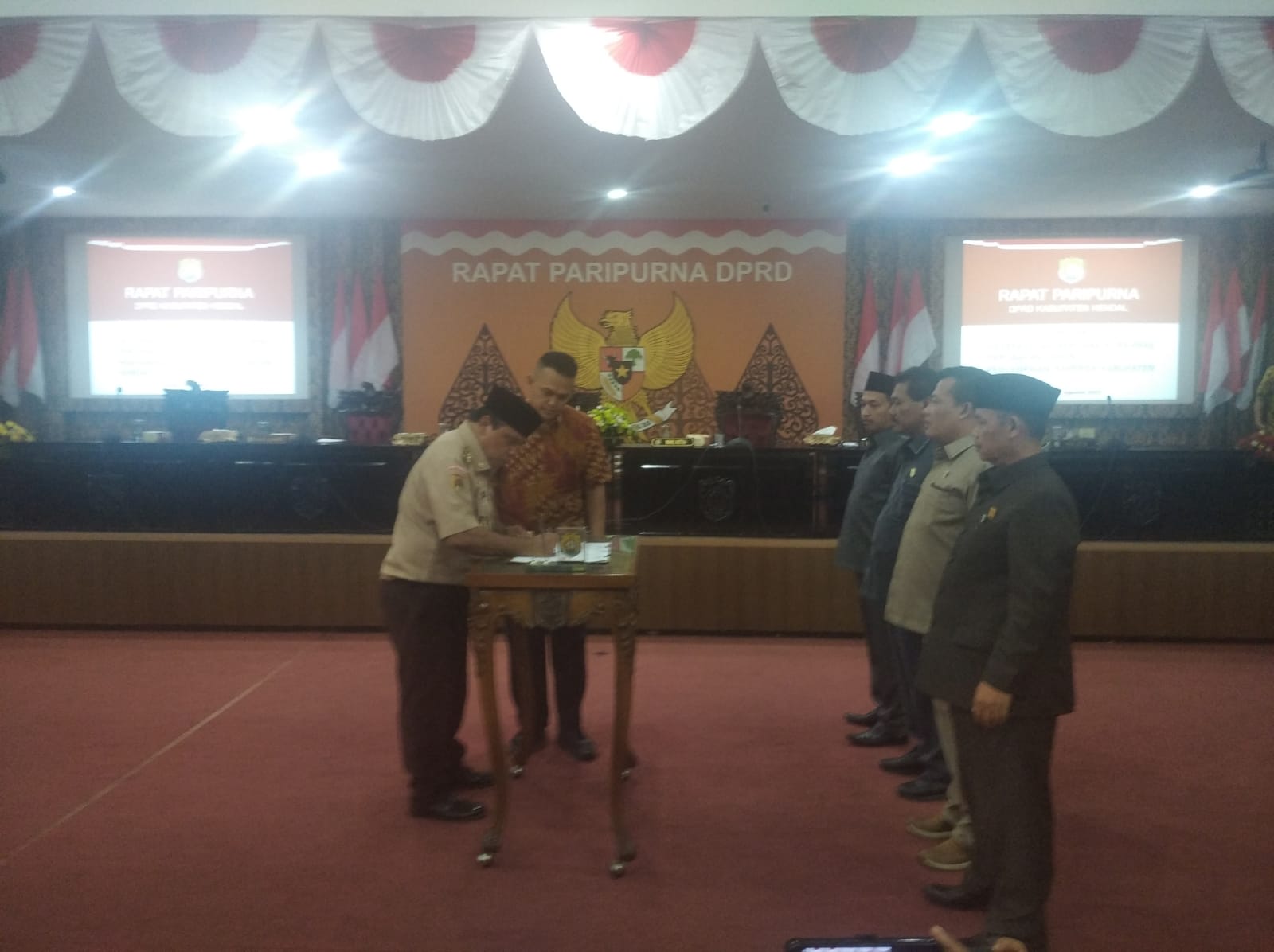 Rapat Paripurna DPRD Kendal akhirnya di tutup setelah dilakukan penandatanganan kesepakatan antara pimpinan dewan dengan Wakil Bupati Windu Suko Basuki. (Muhamd Rohadi)
