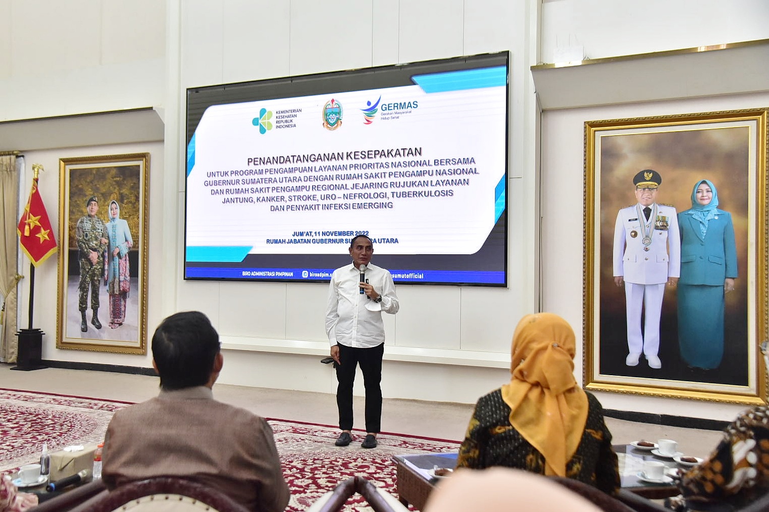 Hal ini disampaikan Gubernur Edy Rahmayadi saat menerima kunjungan perwakilan Kementerian Kesehatan RI bersama beberapa Direktur Utama RS Pengampu layanan jantung, kanker, stroke, uro-nefrologi, tuberkulosis dan penyakit infeksi emerging di Rumah Dinas Gubernur, Jalan Sudirman No. 41 Medan, Jumat (11/11).