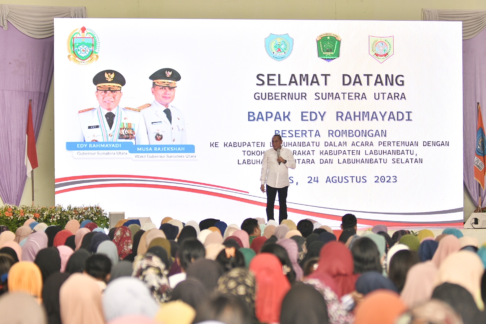 Hadir dalam pertemuan akbar tersebut, Bupati Labuhanbatu Erik Adtrada Ritonga, Bupati Labuhanbatu Utara (Labura) Hendrianto Sitorus dan Bupati Labuhanbatu Selatan (Labusel) Edimin, Komisaris Utama PT Bank Sumut Afifi Lubis. Serta turut mendampingi Gubernur, Ketua TP-PKK Sumut Nawal Lubis bersama pengurus dan PKK kabupaten, Kepala Badan Pendapatan Daerah Achmad Fadly, Kepala Dinas Kesehatan Alwi Muhjahit, Kepala Kesbangpol Ardan Noor, Kepala BPBD Tuahta Saragih, Kepala Dinas Perikanan dan Kelautan Hamdan Sukri Siregar, Kepala Biro Pengadaan Barang dan Jasa Mulyono, Plt Kepala Biro Administrasi Pimpinan (Adpim) Muttaqien Hasyrimi, serta para pejabat lainnya.