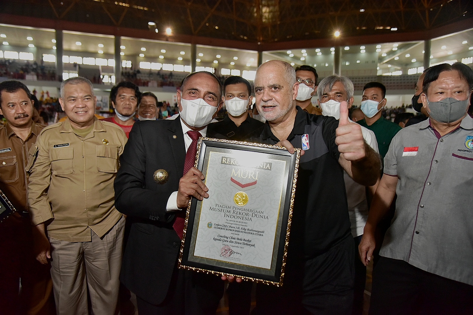 VIRAL24.CO.ID – DELISERDANG – Gubernur Sumatera Utara (Sumut) Edy Rahmayadi optimis Sumut akan memiliki atlet-atlet basket yang handal. Setelah menyaksikan pelatihan Junior National Basketball Association (NBA) yang diikuti 5.500 pelajar se-Sumut dan berhasil meraih rekor Museum Rekor Indonesia (MURI).