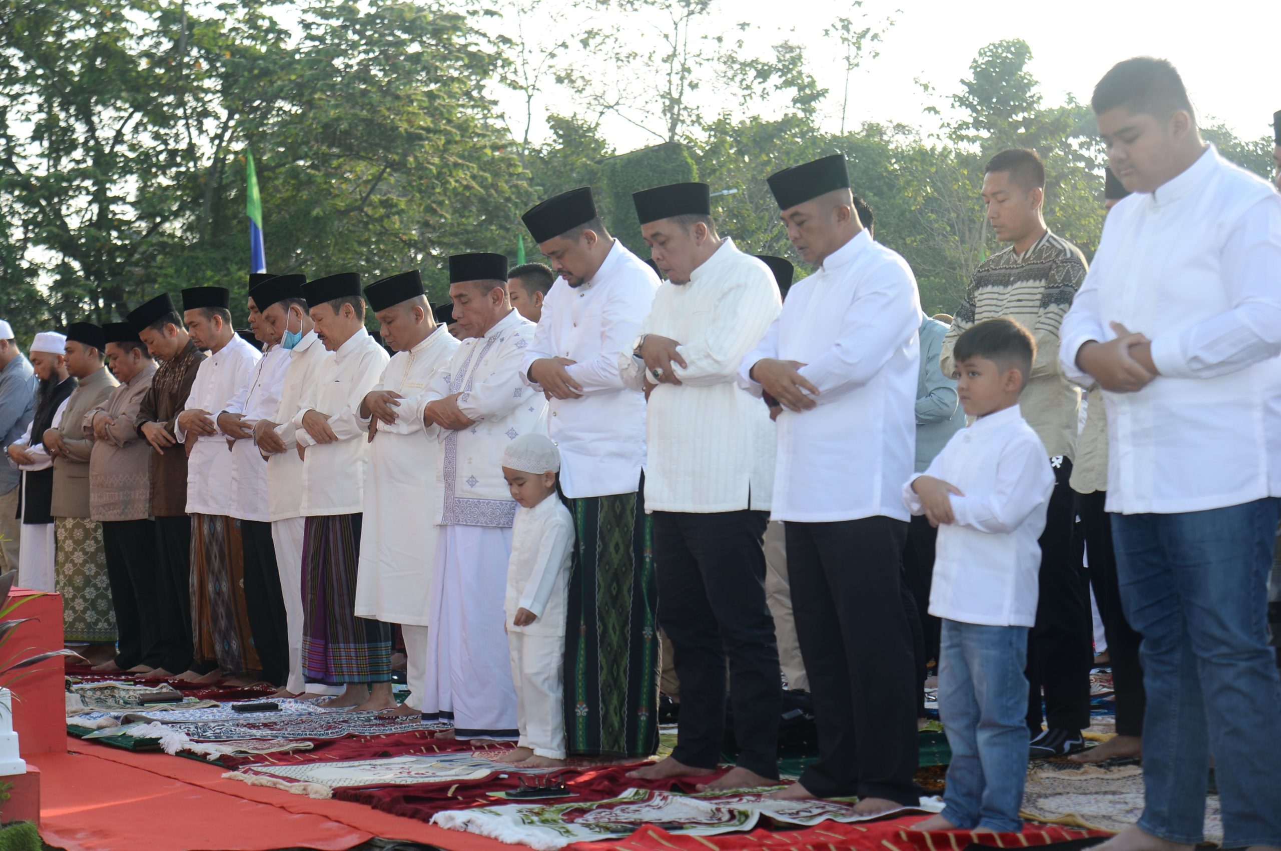 VIRAL24.CO.ID – MEDAN – Gubernur Sumatera Utara (Sumut) Edy Rahmayadi menunaikan Salat Idulfitri 1444 Hijriah bersama ribuan masyarakat di Lapangan Sepak Bola Taman Cadika Medan, Jalan Karya Wisata, Kelurahan Pangkalan Mashur, Kecamatan Medan Johor, Medan, Sabtu (22/4).