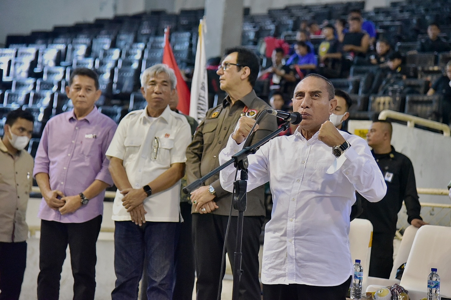 “Keputusan yang salah dari wasit, juri akan mempengaruhi prestasi hingga masa depan atlet, mereka berlatih sampai empat tahun jangan kalian kalahkan hanya dalam waktu dua menit, kalian harus adil,” kata Edy Rahmayadi di Gedung Serbaguna UNIMED, Jalan Williem Iskandar, Deliserdang, Senin (31/10).