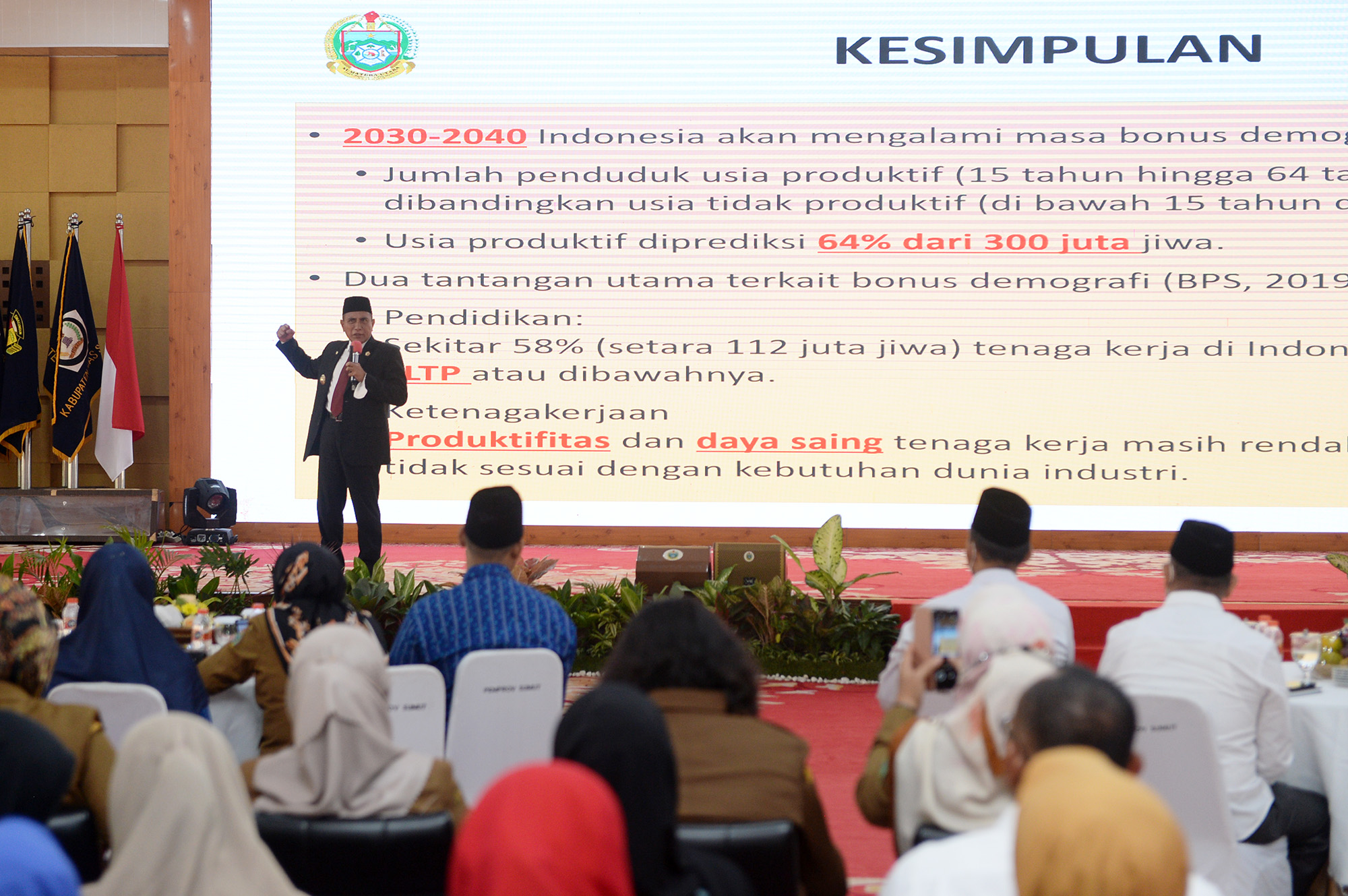 “Jadi kita perlu memahami, bagaimana mengikuti perkembangan dan kemajuan zaman. Karena sekarang ini kita sedang berada di era generasi alfa, dimana perlu pendidikan yang efisien, terakselerasi, dan sudah menggunakan teknologi digital,” kata Gubernur, yang menyampaikan bahwa pada 2030-2040 Indonesia akan mengalami bonus demografi, dengan tingginya masyarakat berusia produktif.
