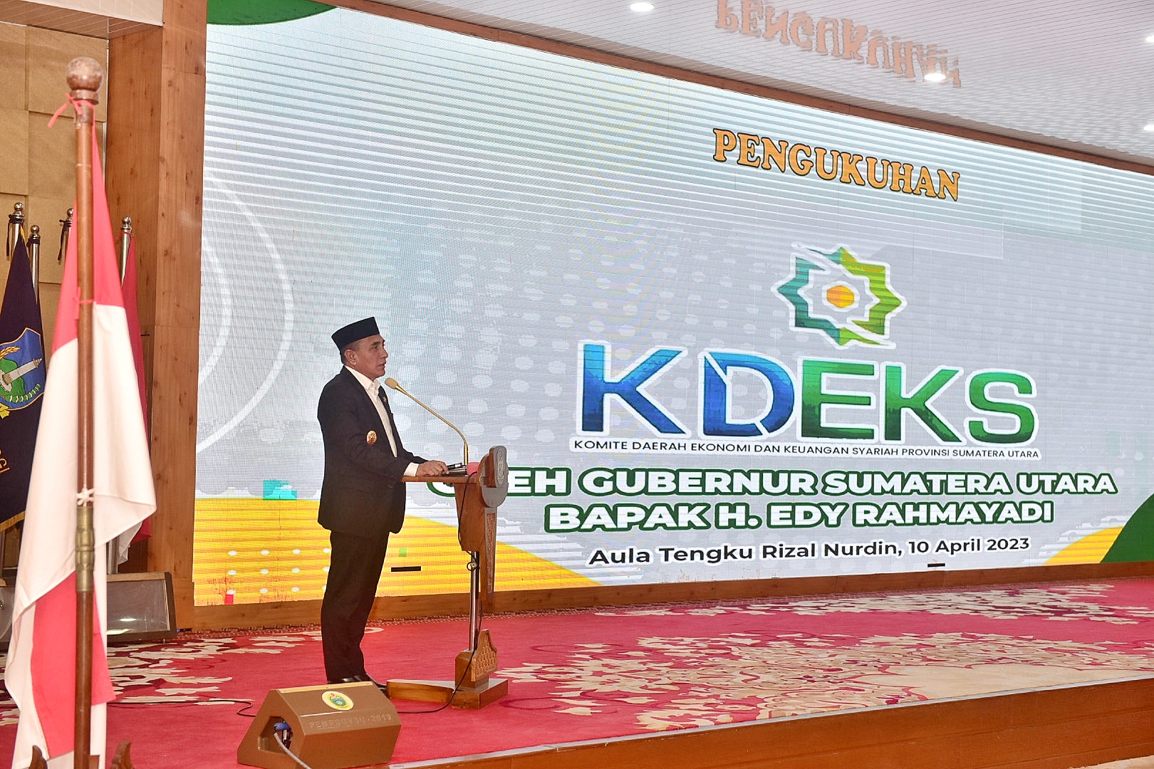 VIRAL24.CO.ID – MEDAN – Gubernur Sumatera Utara (Sumut) Edy Rahmayadi mengukuhkan Komite Daerah Ekonomi dan Keuangan Syariah (KDEKS) Sumut dalam upaya membangun kedaulatan finansial dan perekonomian masyarakat. Diharapkan seluruh jajaran pengurus untuk memberikan prioritas dalam mendukung upaya memperkuat kedaulatan finansial, apalagi negara di Eropa sudah menerapkan sistem ini, dengan istilah berbeda.