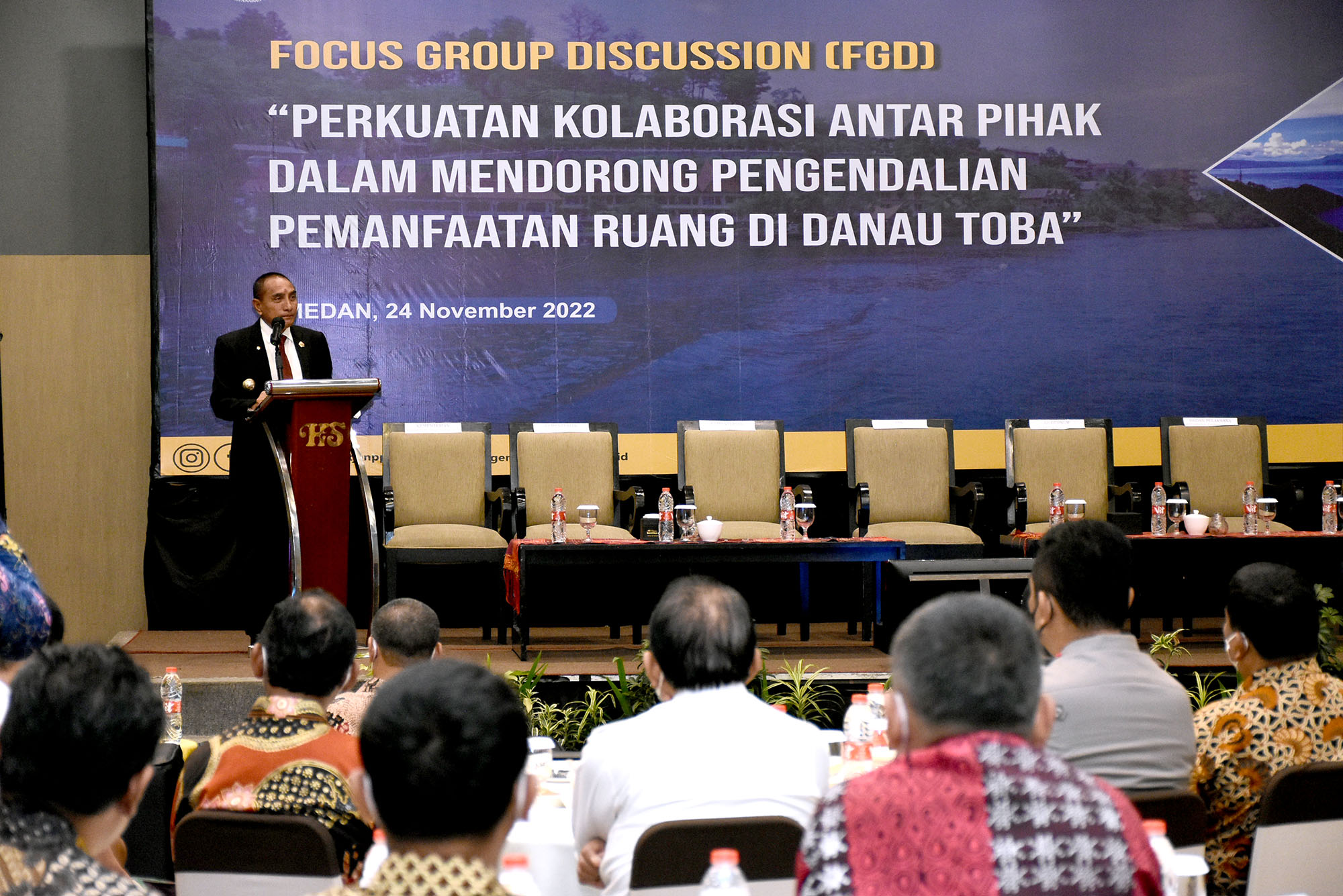 Hal tersebut disampaikan Gubernur dalam sambutannya pada Diskusi Kelompok Terarah Perkuatan Kolaborasi Antara Pihak Dalam Mendorong Pengendalian Pemanfaatan Ruang di Danau Toba, yang digelar Direktorat Jenderal Pengendalian dan Penertiban Tanah dan Ruang, Kementerian Agraria dan Tata Ruang/Badan Pertanahan Nasional (ATR/BPN), di Hotel Santika Dyandra Medan, Jalan Raden Saleh, Medan, Kamis (24/11).