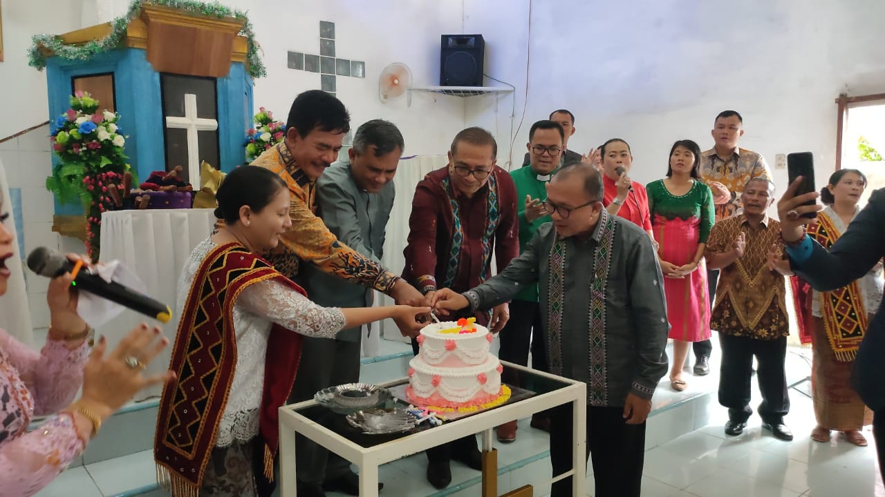 VIRAL24.CO.ID – DELISERDANG – Bupati Nias Barat Khenoki Waruwu menghadiri acara perayaan Hari Ulang Tahun (HUT) XXV dan pesta pembangunan rumah dinas Pendeta Jemaat Gereja ONKP Faomasi Resort Medan, Minggu (19/02/2023).