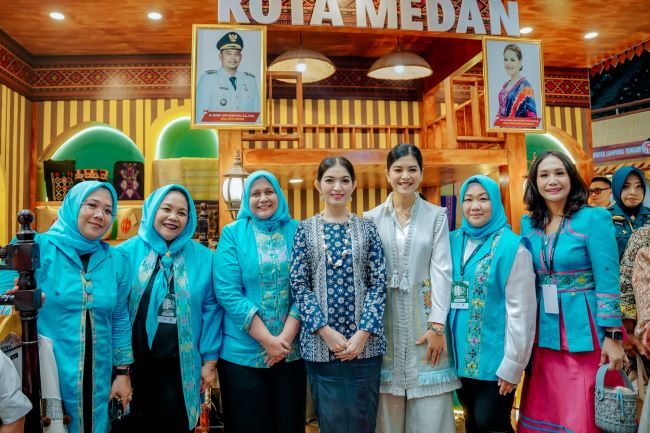 Tidak hanya pengunjung, paviliun Dekranasda Kota Medan menarik perhatian Ketua Umum Dekranas didampingi ibu-ibu Seruni Kabinet Merah Putih sehingga datang mengunjunginya. Dengan ramah, Kahiyang Ayu didampingi pengurus Dekranasda Kota Medan langsung menyambutnya.