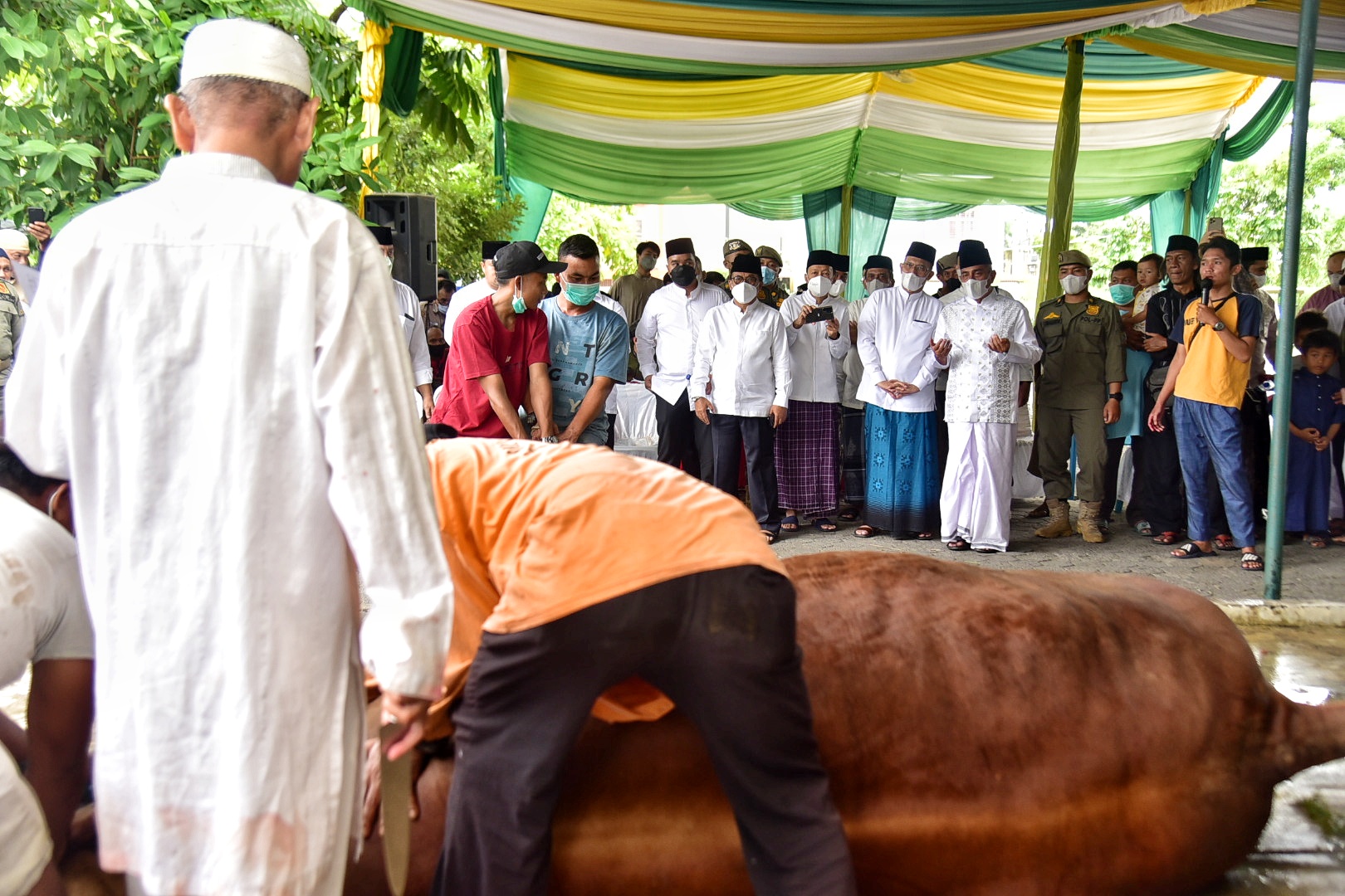 “Perekonomian kita belum pulih sepenuhnya setelah kurang lebih dua setengah tahun dilanda Covid-19. Ada juga kenaikan harga bahan pangan. Saya berharap ini membantu baik bagi peternak sapi dan juga masyarakat secara umum,” kata Edy Rahmayadi usai meninjau penyembelihan sapi di Masjid Al-Jihad.