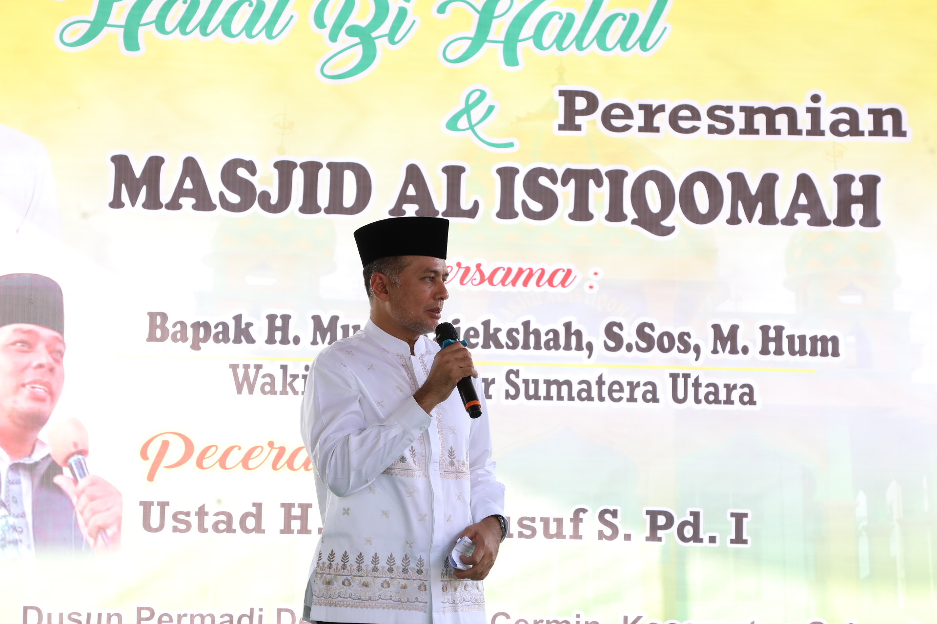 VIRAL24.CO.ID – LANGKAT- Wakil Gubernur (Wagub) Sumatera Utara (Sumut) Musa Rajekshah mendorong para pengurus Badan Kenaziran Masjid (BKM) yang ada di Sumut untuk ikut meningkatkan ekonomi umat dari masjid. Demikian disampaikan pria yang akrab disapa Ijeck tersebut saat meresmikan Masjid Al Istiqomah di Jalan Binjai Kuala, Desa Padang Cermin, Langkat, Sabtu (13/5).