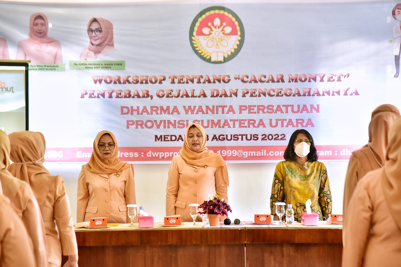 Hal tersebut disampaikan Penasihat Dharma Wanita Persatuan (DWP) Sumatera Utara (Sumut) Nawal Lubis saat menghadiri workshop cacar monyet di Kantor DWP Sumut, Jalan Teuku Cik Ditiro, Medan, Senin (8/8). “Cacar moyet belum ada di Indonesia, apalagi di Sumut, tapi kita perlu mengetahui seluk beluknya, sehingga bisa kita cegah, kita lebih baik mencegah daripada mengobati,” kata Nawal.