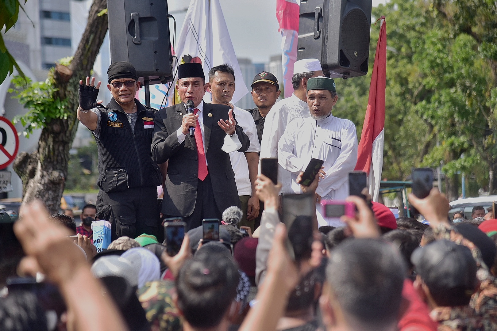 “Apa yang kalian sampaikan saya akan tulis, dan akan saya laporkan sampai ke pusat di Jakarta sana,” ujar Gubernur Edy Rahmayadi menanggapi aspirasi ratusan pendemo di atas mobil pick-up.