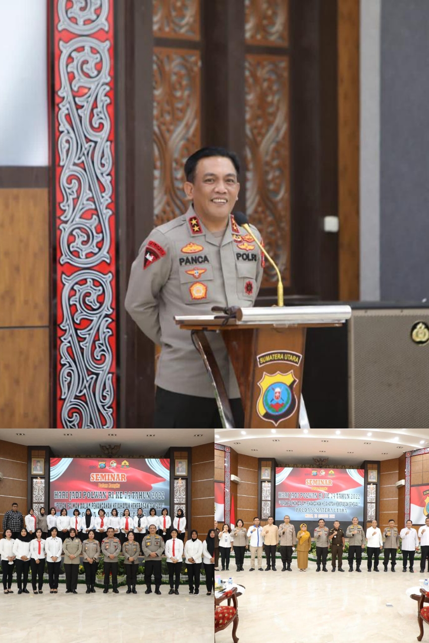 VIRAL24.CO.ID – MEDAN – Kapolda Sumut Irjen Pol. Drs. R. Z. Panca Putra S, M.Si membuka sekaligus memberi arahan dalam rangka Seminar Hari Jadi Polwan ke 74. Seminar digelar di Aula Tribata Mapolda Sumut dengan tema “Peran Polwan Dalam Penanganan Kejahatan Kekerasan Seksual”, Senin (29/08).