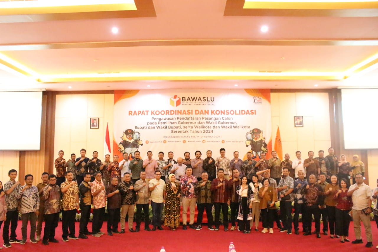 VIRAL24.CO.ID – PADANG LAWAS UTARA – Dalam Rangka Pengawasan Pendaftaran Pasangan Calon Pada Pemilihan Gubernur dan Wakil Gubernur, Bupati dan Wakil Bupati, serta Walikota dan Wakil Walikota Serentak Tahun 2024. Bawaslu Provinsi Sumatera Utara Gelar Koordinasi dan Konsolidasi di Sapadia Hotel Gunung Tua. Senin, (19/08/2024).