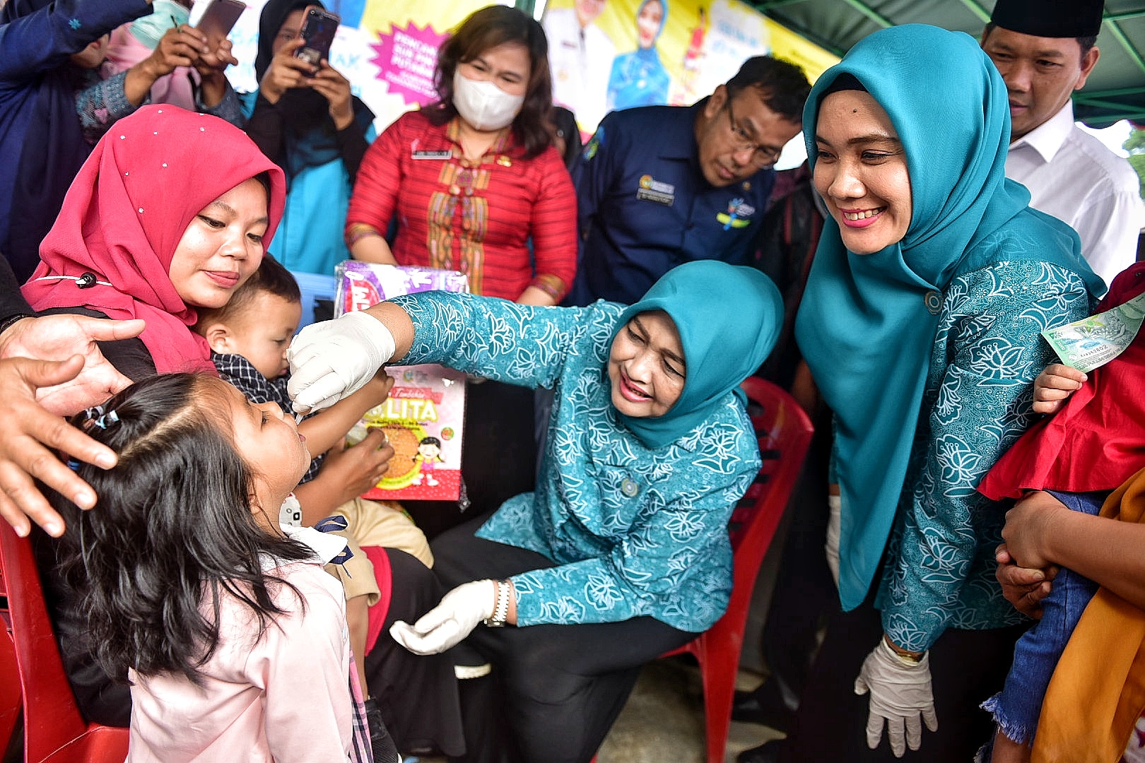 Dalam kunjungna itu, Nawal Lubis didampingi Ketua TP PKK Tapsel Rosalina Dolly Pasaribu disambut hangat para kader PKK kecamatan dan kelurahan, serta kaum ibu yang mengantre untuk mendapatkan vaksin polio bagi anak balitanya