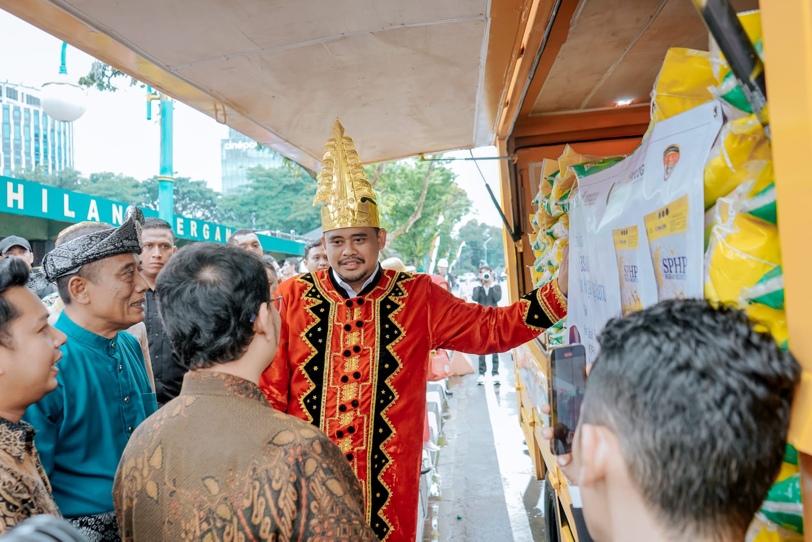 Sebelum melakukan pelepasan, menantu Presiden Joko Widodo ini lebih dahulu mengecek mobil dan bahan kebutuhan pokok yang akan dijual kepada masyarakat dengan harga lebih murah dari pasaran. Ada 3 jenis bahan kebutuhan pokok yang akan dipasarkan secara keliling itu yakni beras medium dengan ukuran 5 kg/karung Rp.49.750, minyak goreng Rp.13.500/kg dan gula pasir Rp.13.500/kg.