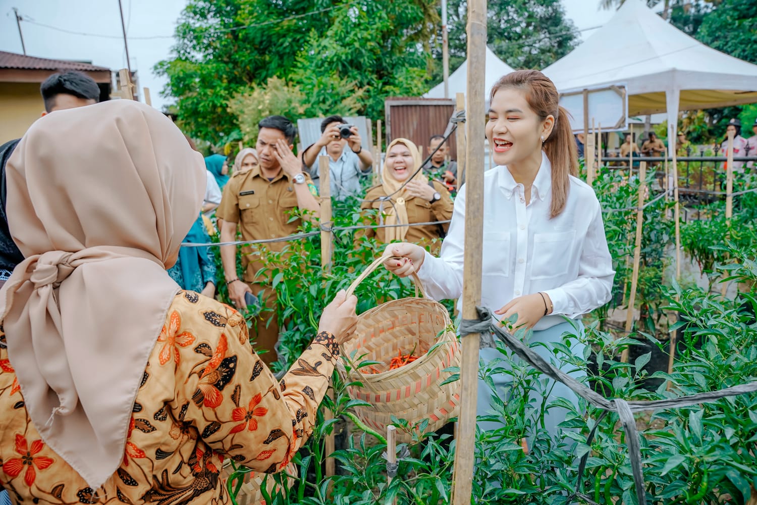 VIRAL24.CO.ID – MEDAN – Ketua TP PKK Kota Medan Ny Kahiyang Ayu M Bobby Afif Nasution panen cabai merah di atas lahan milik warga Jalan Karikatur Kelurahan Pulo Brayan Darat II Kecamatan Medan Timur, Senin (12/2). Diharapkan, panen ini dapat membuka pintu menuju kemakmuran dan kemandirian bagi masyarakat setempat karena hasilnya dapat dijual.