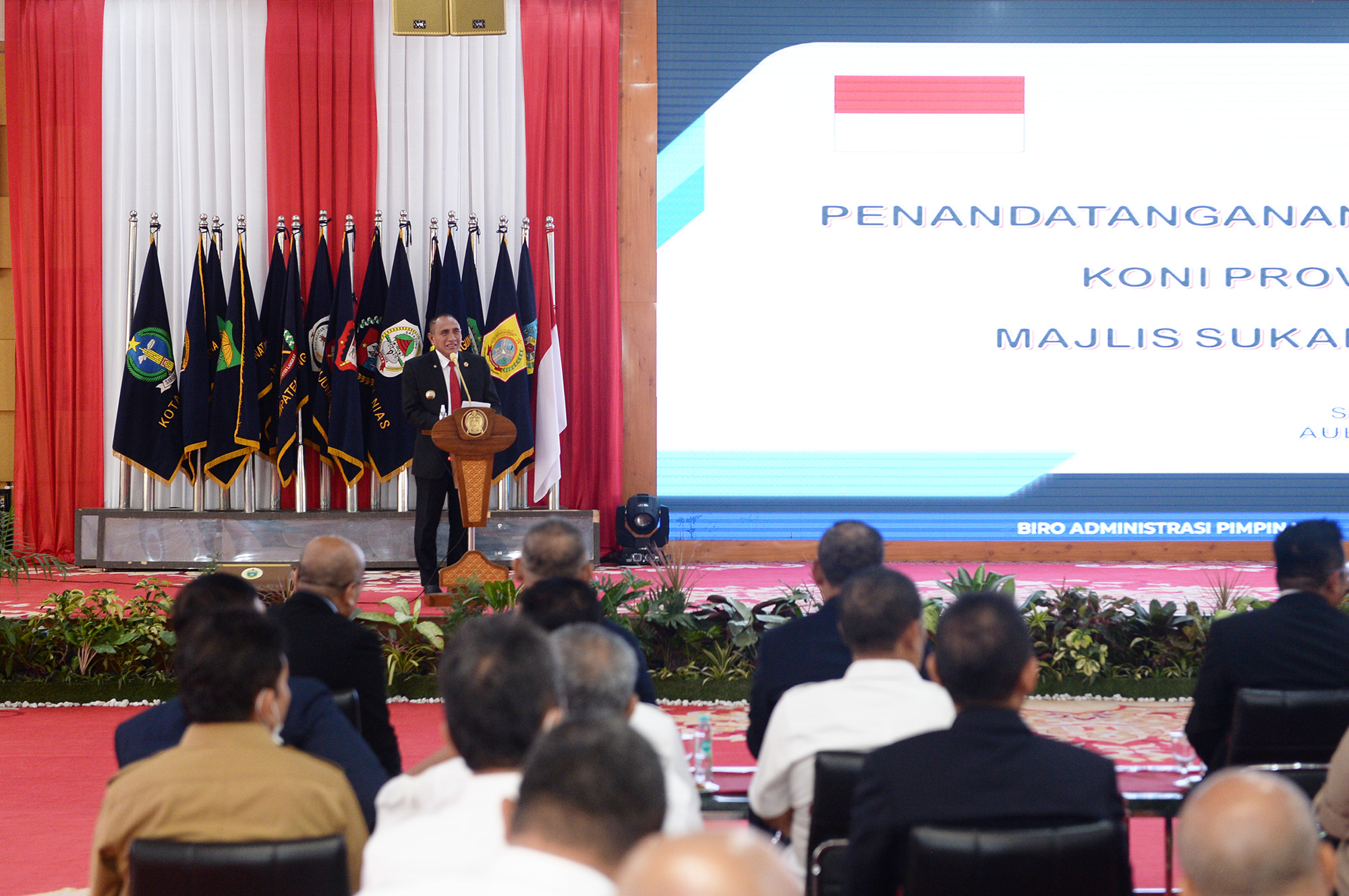 Hal itu diungkapkan Edy Rahmayadi sewaktu memberi sambutan pada penandatanganan kesepahaman antara Komite Olahraga Nasional Indonesia (KONI) dengan Majelis Sukan Negara Malaysia di Aula Tengku Rizal Nurdin, Rumah Dinas Gubernur, Jalan Jenderal Sudirman 41, Medan, Senin (29/8). “Lain kali akan kita rayakan dengan gondang sembilan, kita bawa dia pulang kampung,” kata Edy Rahmayadi.