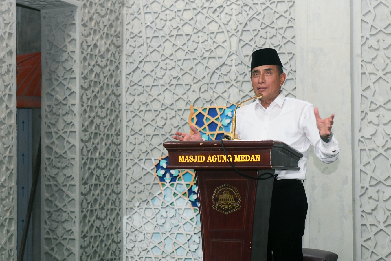 “Ini bukan karena saya Gubernurnya, lantas seolah ini seperti karena saya, tidak. Ini adalah masjid milik umat, dibangun dari sumbangsih masyarakat Sumatera Utara,” ujar Gubernur.