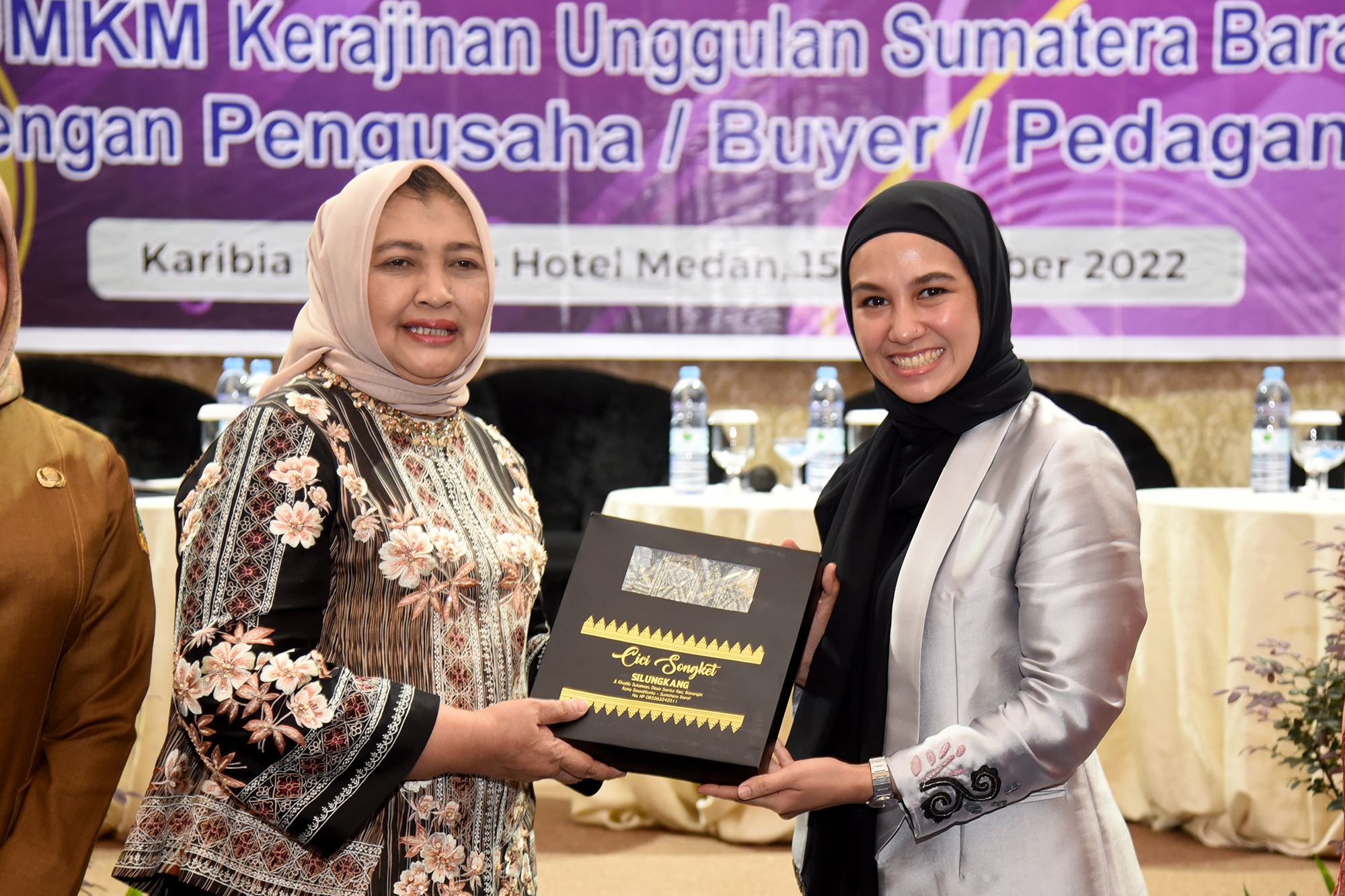 Hal itu disampaikan Nawal Lubis pada acara Temu Bisnis UMKM Kerajinan Unggul Sumatera Barat (Sumbar) di Hotel Karibia Boutique Medan, Selasa (15/11). Hadir di antaranya Wakil Ketua Dekranasda Sumbar Fitria Amalia Audy beserta rombongan.