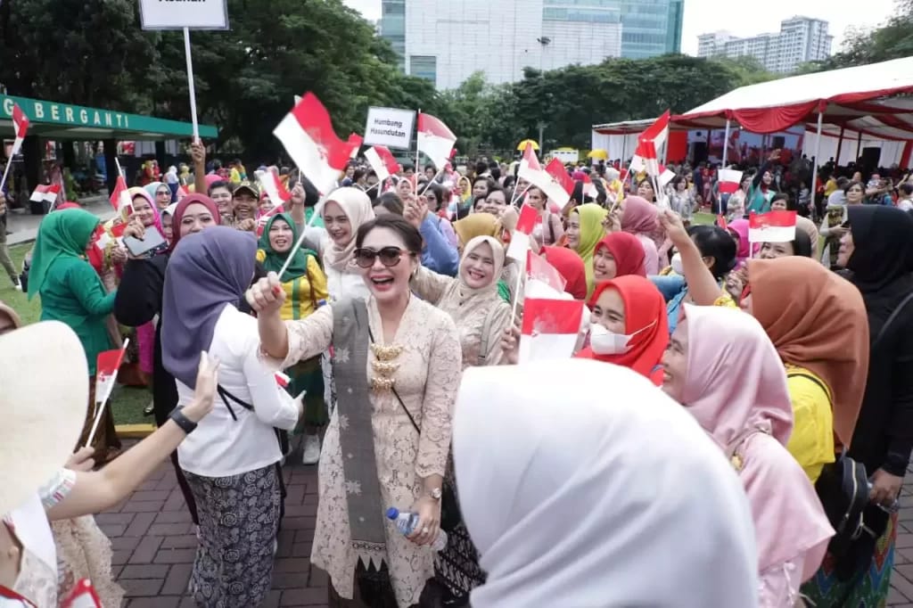 VIRAL24.CO.ID – ASAHAN – Ketua TP. PKK Kabupaten Asahan di Wakili Ketua I Bidang Pembinaan Karakter Keluarga Ny. Yusnila Indriati Taufik beserta pengurus, Ketua Bhayangkari Ny. Pepin Roman Elhaj beserta pengurus, Persit KCK Cab XXXV Dim 0208/AS, Adhiyaksa Dharmakarini Asahan, Dharmayuktikarini PN Kisaran, Wakapolres Asahan, Ketua Dharma Wanita Persatuan Kab. Asahan Ny Derlina John Hardi hadiri Parade dan Gebyar berkebaya Nasional tahun 2022 Goes to UNESCO yang di ikuti Seluruh Kabupaten Kota se-Sumatera Utara, bertempat di Lapangan Benteng Medan, Minggu (28/08/2022).