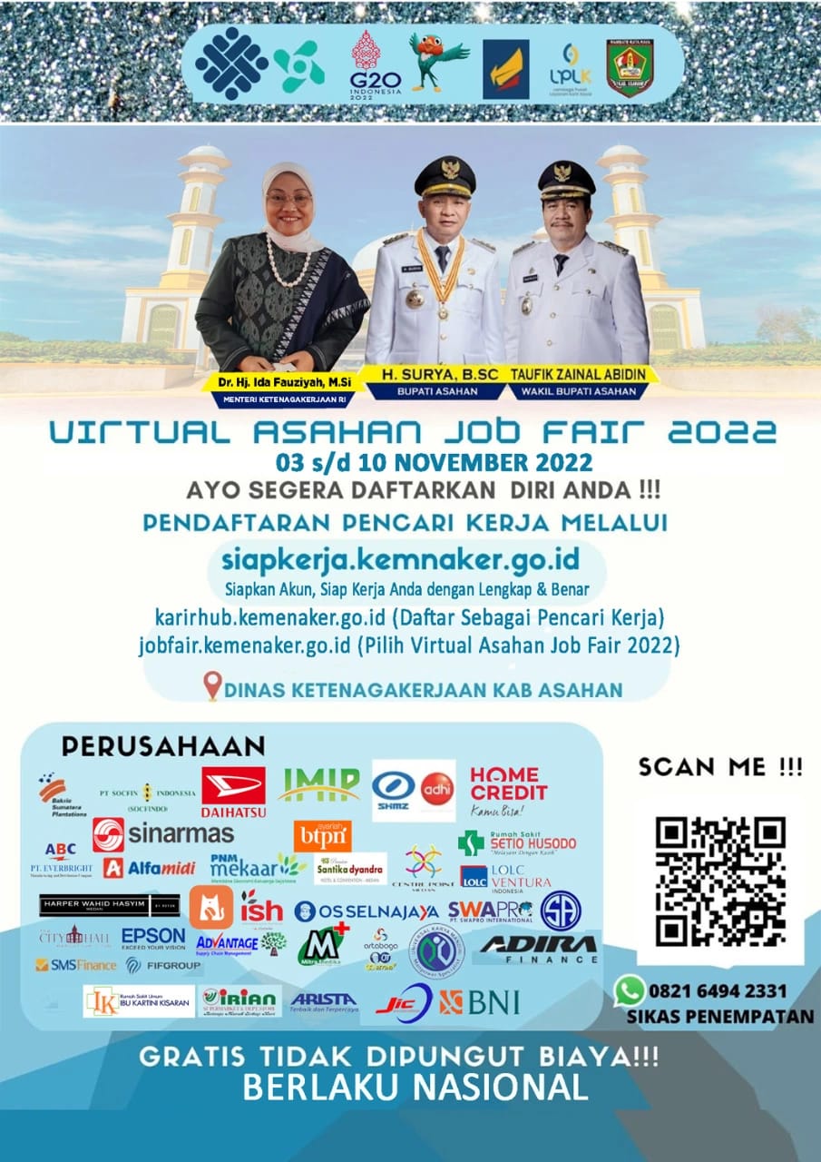 VIRAL24.CO.ID – ASAHAN – Untuk memberikan peluang dan kesempatan kerja bagi masyarakat Kabupaten Asahan serta peningkatan lapangan pekerjaan, Pemerintah Kabupaten Asahan melalui Dinas Ketenagakerjaan Kabupaten Asahan akan mengadakan job fair secara virtual.