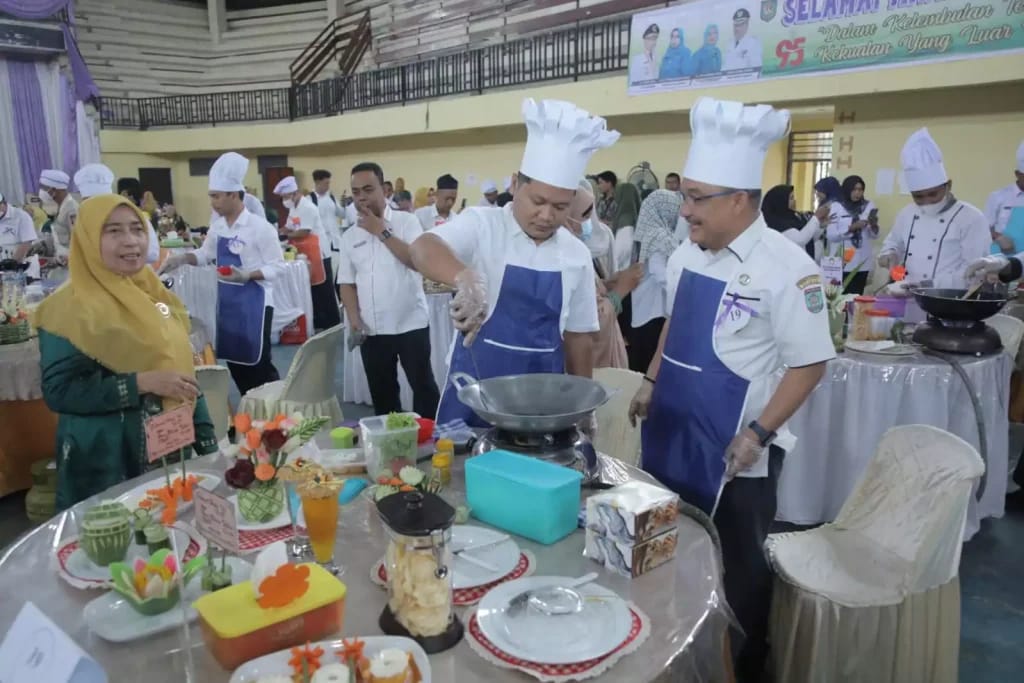 VIRAL24.CO.ID – ASAHAN – Untuk memeriahkan Peringatan Hari Ibu ke-95 Tahun dan Hari Ulang Tahun (HUT) ke-24 Dharma Wanita Persatuan (DWP), Pemerintah Kabupaten Asahan melalui Dinas Pengendalian Penduduk Keluarga Berencana Pemberdayaan Perempuan dan Perlindungan Anak (P2KBP3A) Kabupaten Asahan menggelar lomba memasak nasi goreng bagi Bapak OPD dan Bapak Camat di Gedung Serbaguna Kisaran, Rabu (20/12/2023). Turut hadir Bupati Asahan, Sekretaris Daerah Kabupaten Asahan, Para Asisten, Ketua TP PKK Kabupaten Asahan beserta pengurus, Ketua DWP Kabupaten Asahan beserta pengurus, Ketua DWP Unit Dinas, Ketua DWP unit Kecamatan, OPD, Camat dan tamu undangan lainnya.
